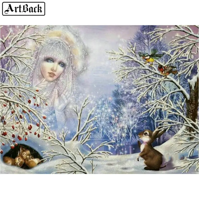 Новинка diy Алмазная картина кролик зимний пейзаж девушка полностью Квадратный бриллиант, 5D мозаика Искусство Смола стикер домашнего декора