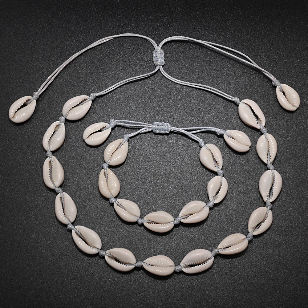 Оригинальный дизайн ожерелье из ракушечника браслет один комплект натуральные ракушки вязаный цепочка для девочек колье, браслет, украшение, подарок регулируемый