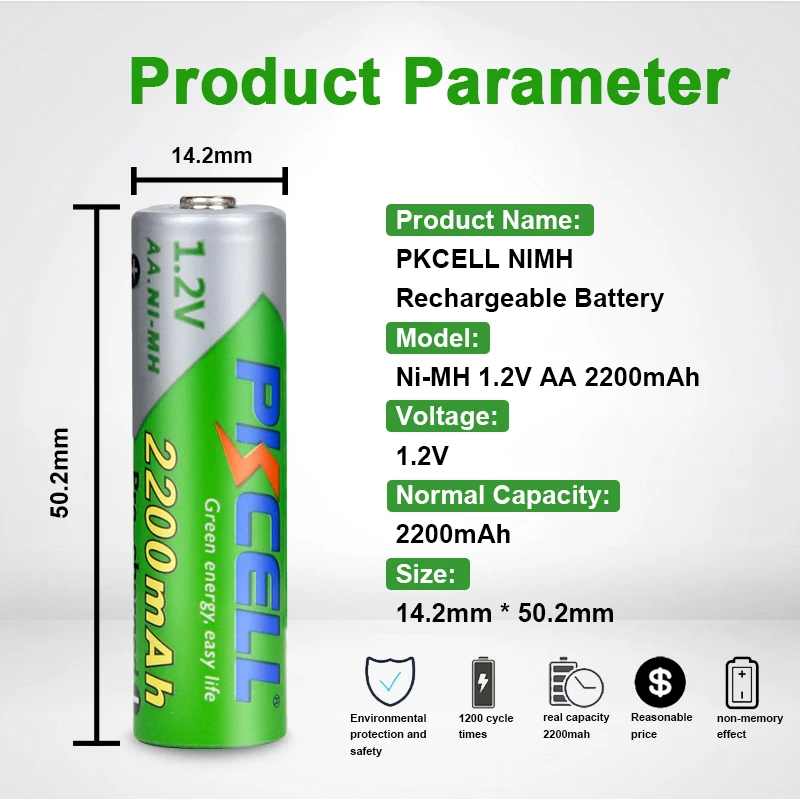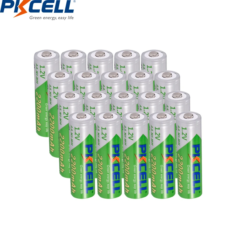 20 шт., аккумуляторные батарейки PKCELL, 1,2 в, 2200 мач