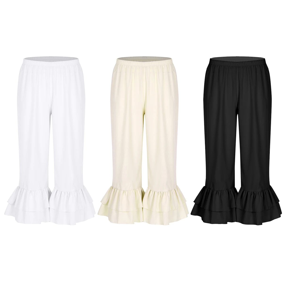 Особенности: Женские винтажные брюки-шаровары с оборками в стиле ретро, с застежкой на пуговицах. Эластичный пояс для регулируемой посадки, с двумя рядами оборки внизу, длина до икры, свободный крой. Универсальный винтажный вид, изготовлен из легкой и дышащей ткани, мягкий и удобный в носке. Идеально подходит для исторических костюмов: Ренессанс, средневековый, пионер, Колониальный, крестьянский, паломнический, амиш, пуритан. Пожалуйста, ознакомьтесь с нашей подробной таблицей размеров ниже перед покупкой. Ручная стирка в холодной воде.
