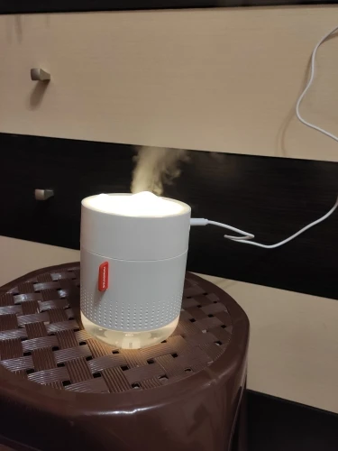имеет 2 режима распыления (как и в описании), включается подстветка долгим нажатием на кнопку. Единственный минус криво вставлено гнездо питания на полмиллиметра криво, но штекер входит, еще бы немного и был бы нерабочим.
