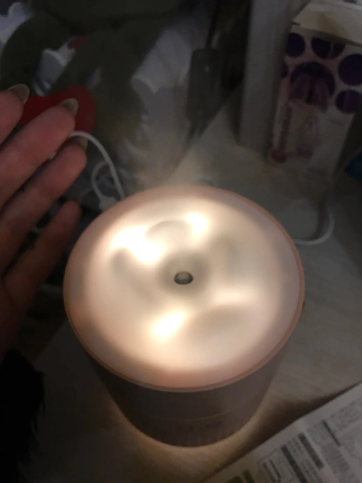 Òtimo produto. Muito bonito, qualidade excelente. A luz acende de forma independente, então pode ser usado tanto como umidificador quanto como luminária. A luz não é muito forte, mas é bonita. Chegou em pouco mais de uma semana.
