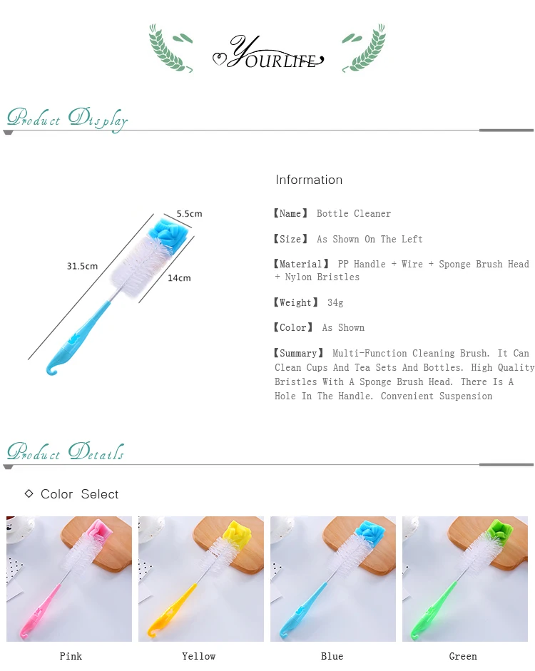 OYOURLIFE гибкий очиститель для бутылок с длинной ручкой, стеклянная чашка, бутылка для молока, чайник, очиститель, скруббер, бытовой кухонный чистящий инструмент