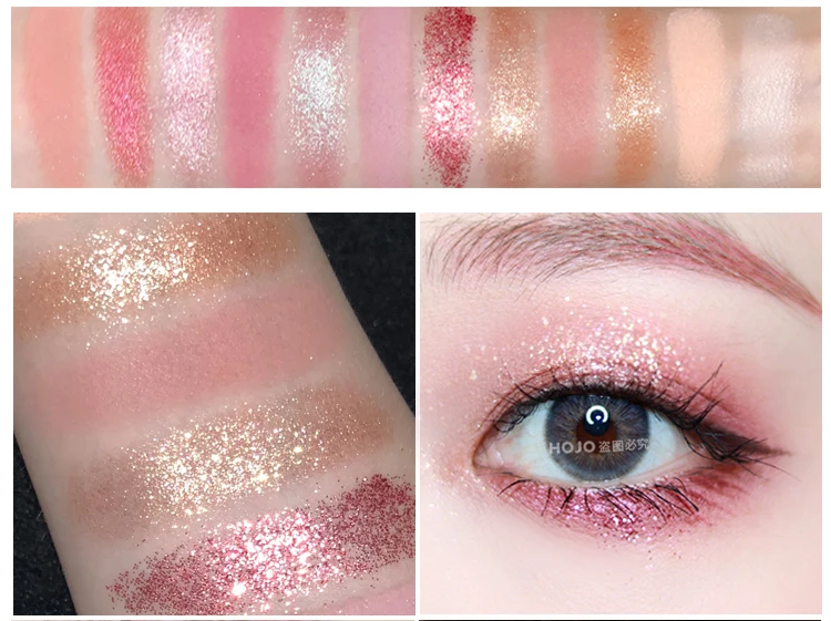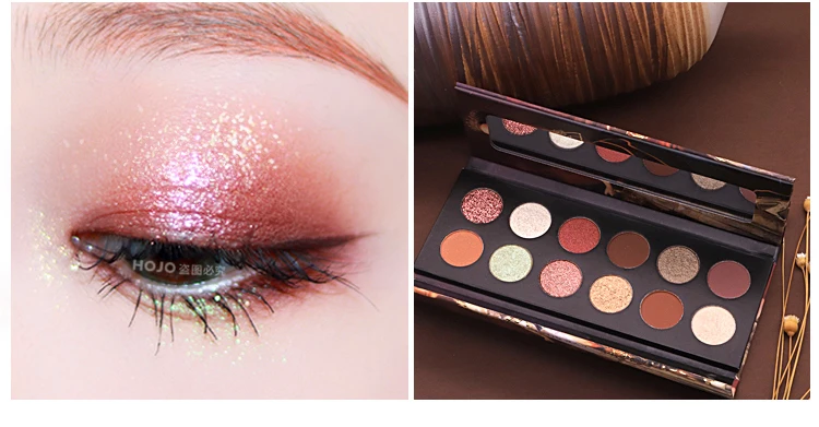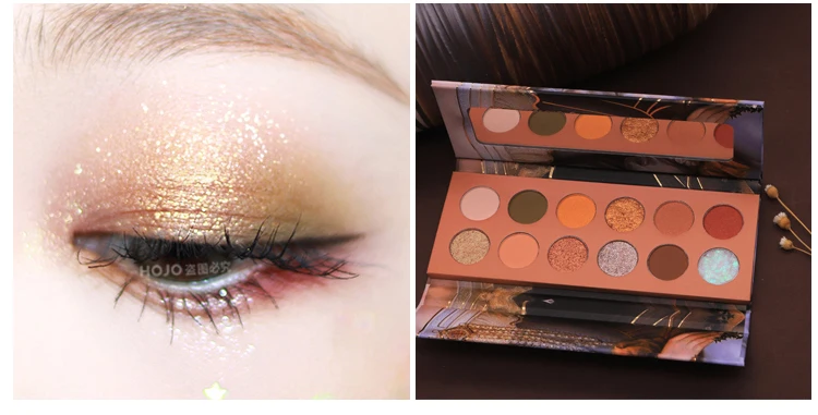 Тени для век HOJO, 12 цветов, телесные, мерцающие, матовые, водостойкие, легкие в использовании, блестящие, пигментные тени для век, пудра для макияжа
