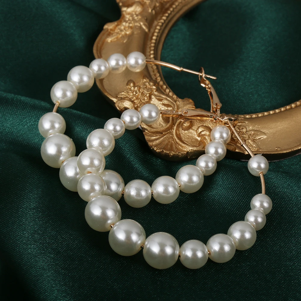 Женские серьги с искусственным жемчугом, серьги в виде больших круг...