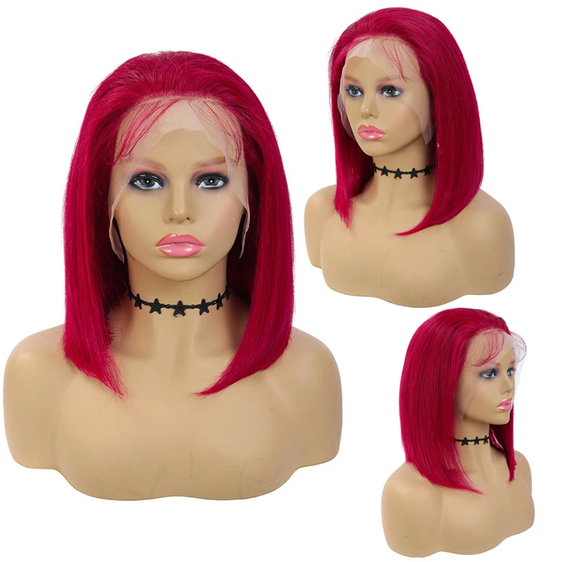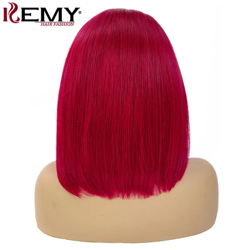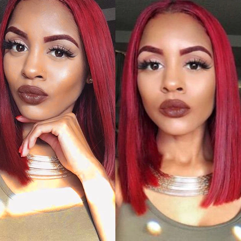 99Jбордовые короткие парики из человеческих волос с коротким Бобом, предварительно выщипанные бразильские прямые парики на сетке спереди для женщин, Remy 13x4, парик на сетке спереди 150%