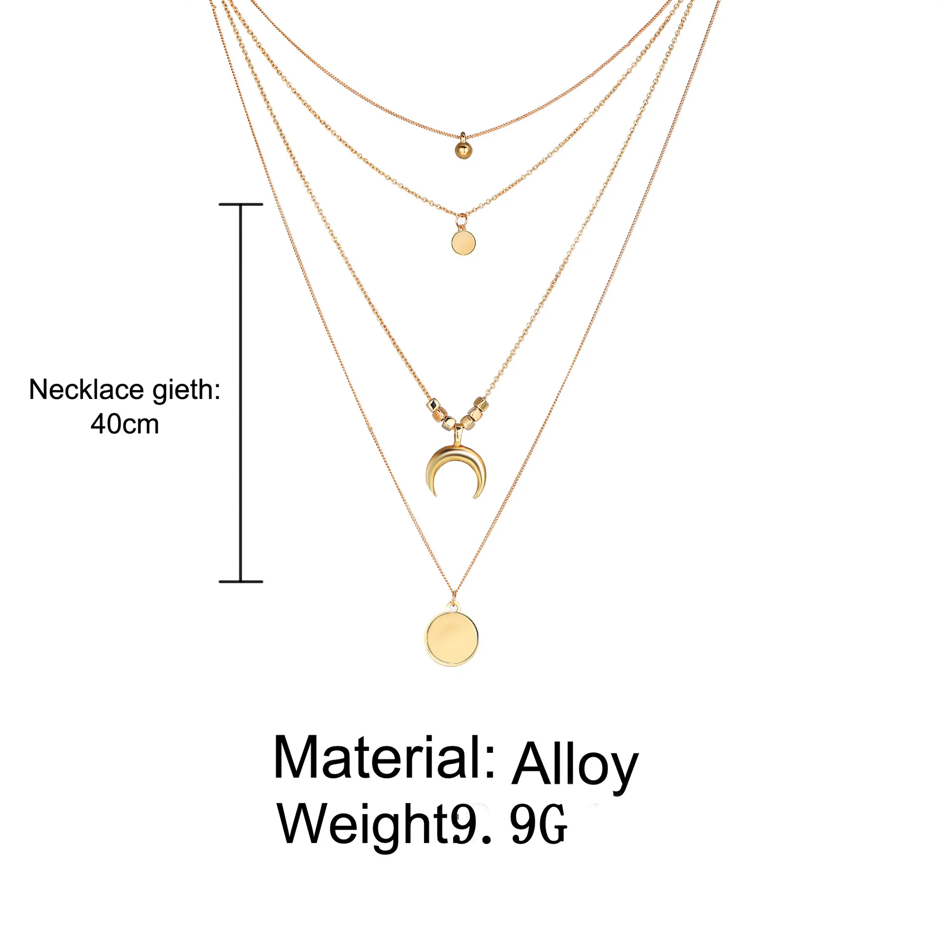 Богемное многослойное ожерелье простое ожерелье с подвеской золотистого цвета Луна для женщин цепи ожерелье женские ювелирные изделия оптом