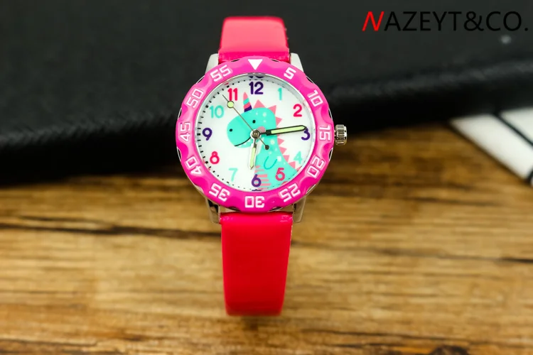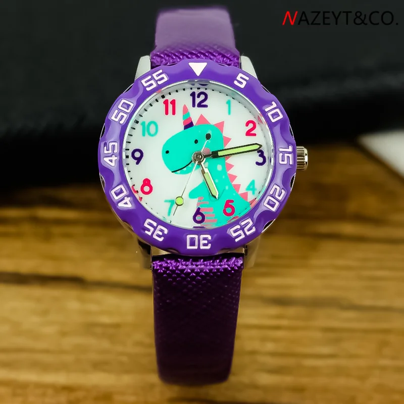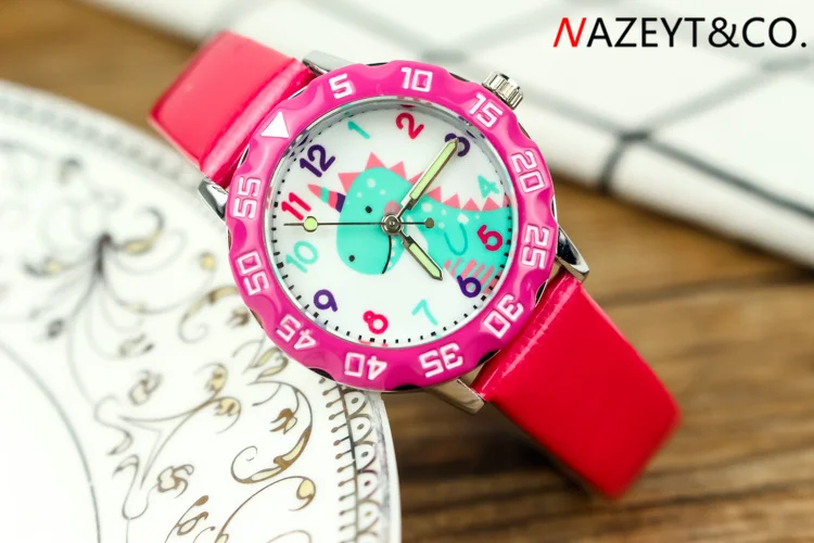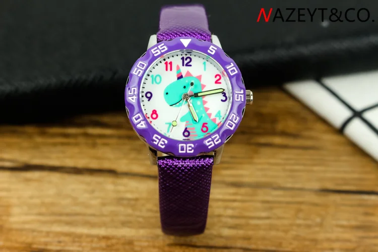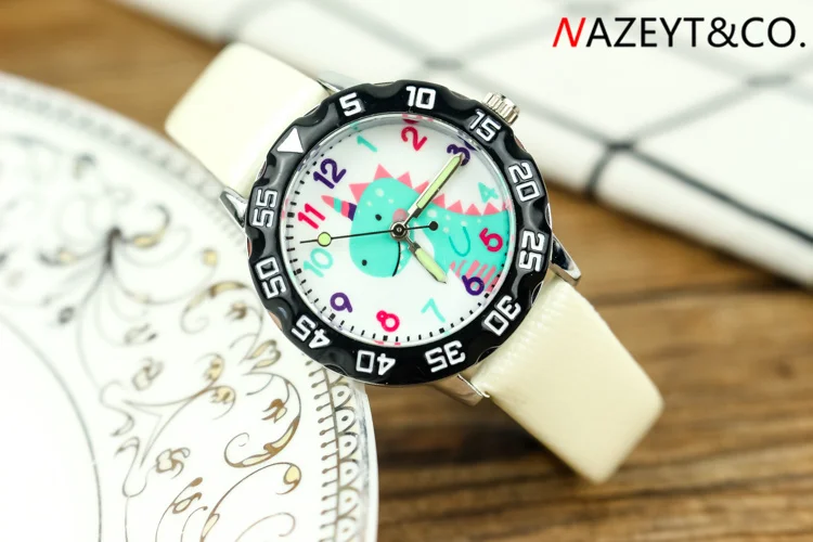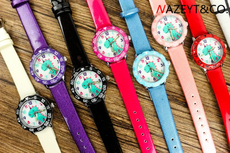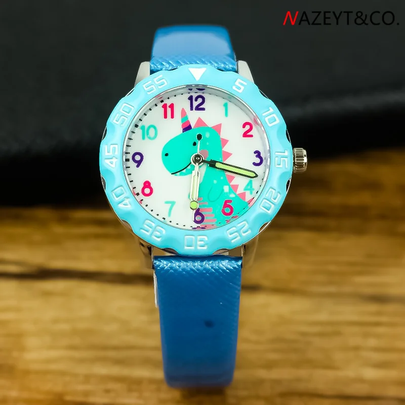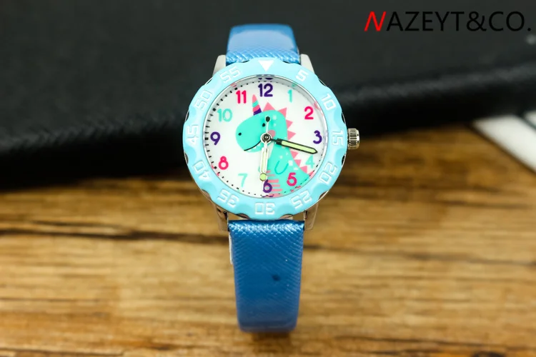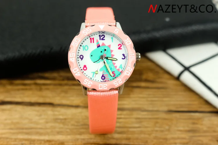 Часы наручные Детские кварцевые с циферблатом динозавра, с кожаным ремешком