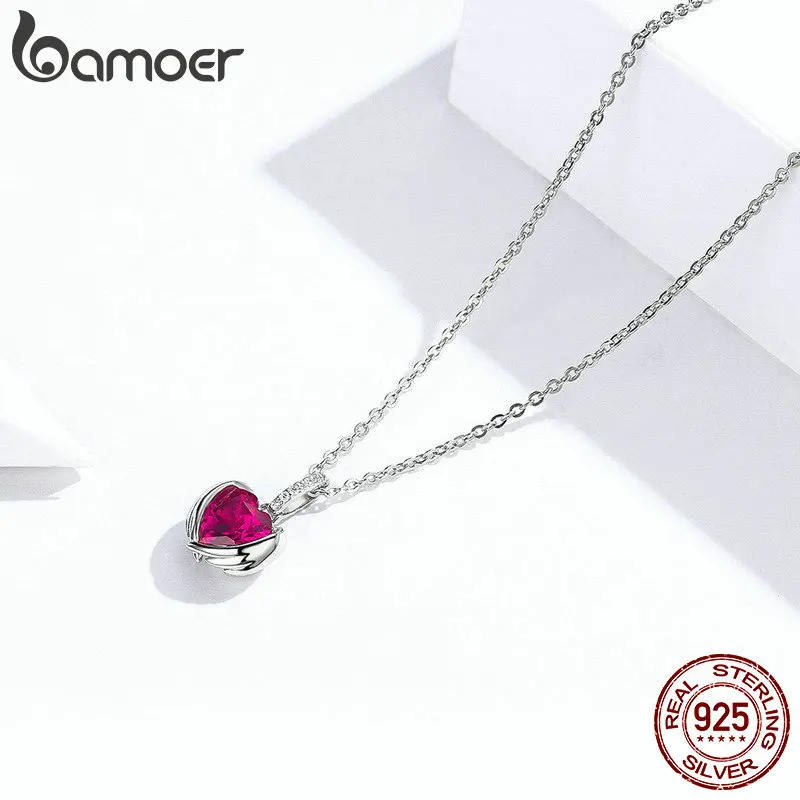 Набор украшений bamoer для женщин, ожерелье и серьги-гвоздики в форме сердца с крыльями хранителя, ювелирные изделия из стерлингового серебра 925 пробы, 4 шт., ZHS146