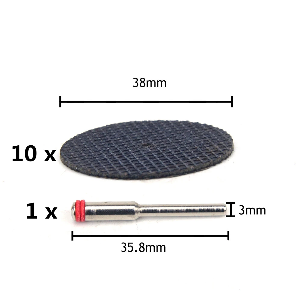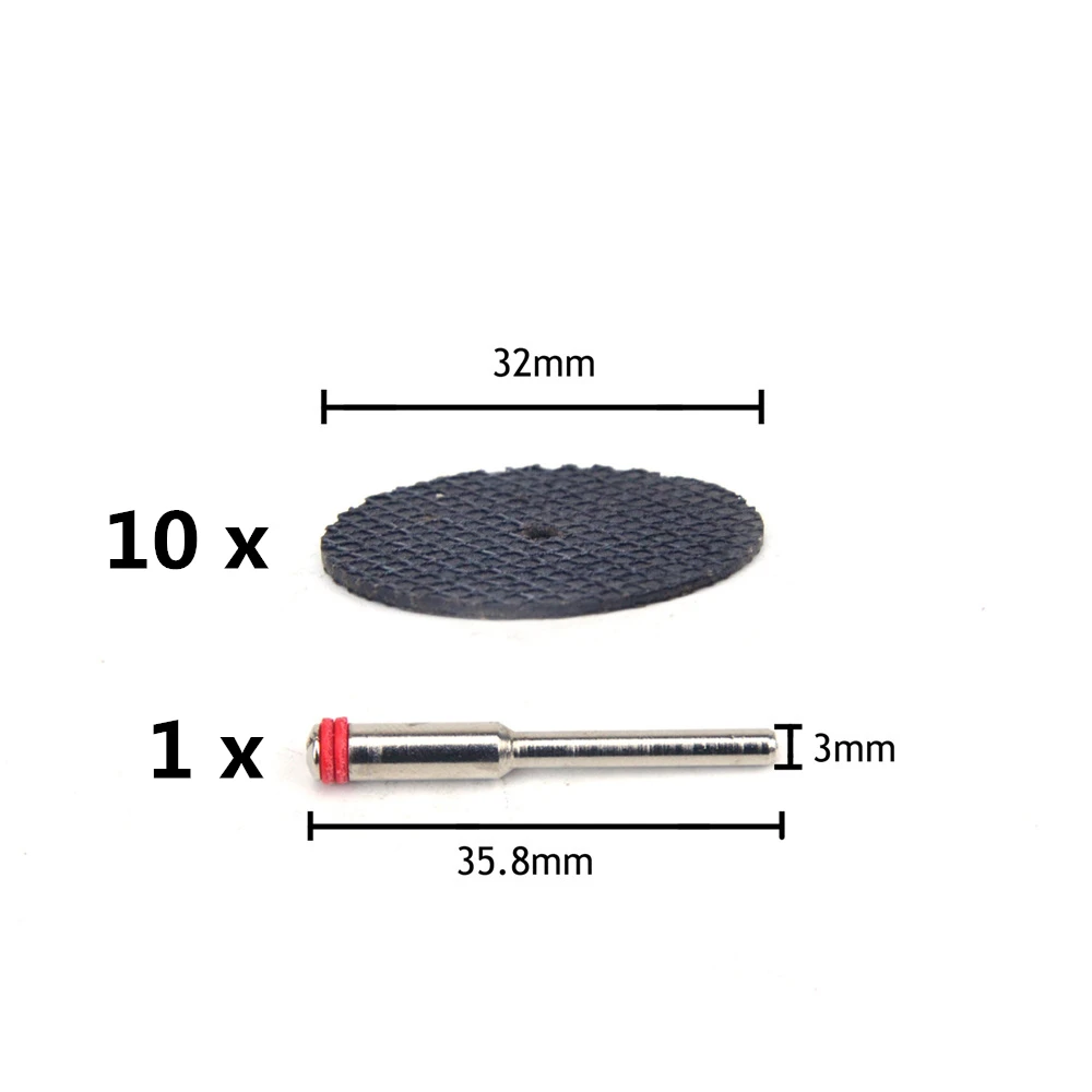 Название продукта:10 шт. двухсторонний сетчатый режущий диск + 1 шт. 3 мм хвостовик из смолы мини дисковая пила для мягкой металлической резки дерева подходит для инструментов Dremel