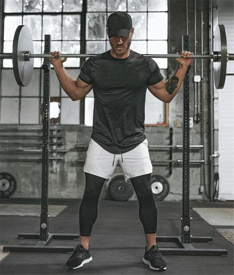 Рубашка для бега, мужские сетчатые топы для фитнеса, Спортивная футболка с круглым вырезом, для тренажерного зала, с коротким рукавом для тренировок дышащая спортивная одежда, трикотажные изделия