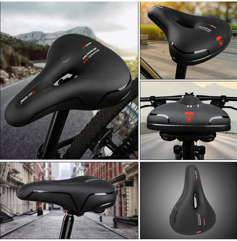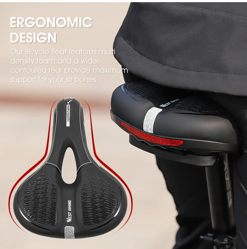 WEST BIKIMG утолщенное велосипедное седло красно-желтого цвета, Светоотражающий ремень, предупреждающее мягкое амортизирующее Велосипедное Сиденье, MTB седло горного велосипеда велосипед