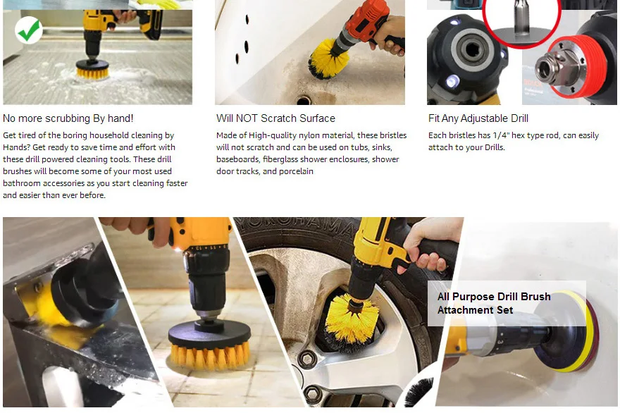 Набор щеток для электрической дрели для ванной комнаты, ванны, душа...