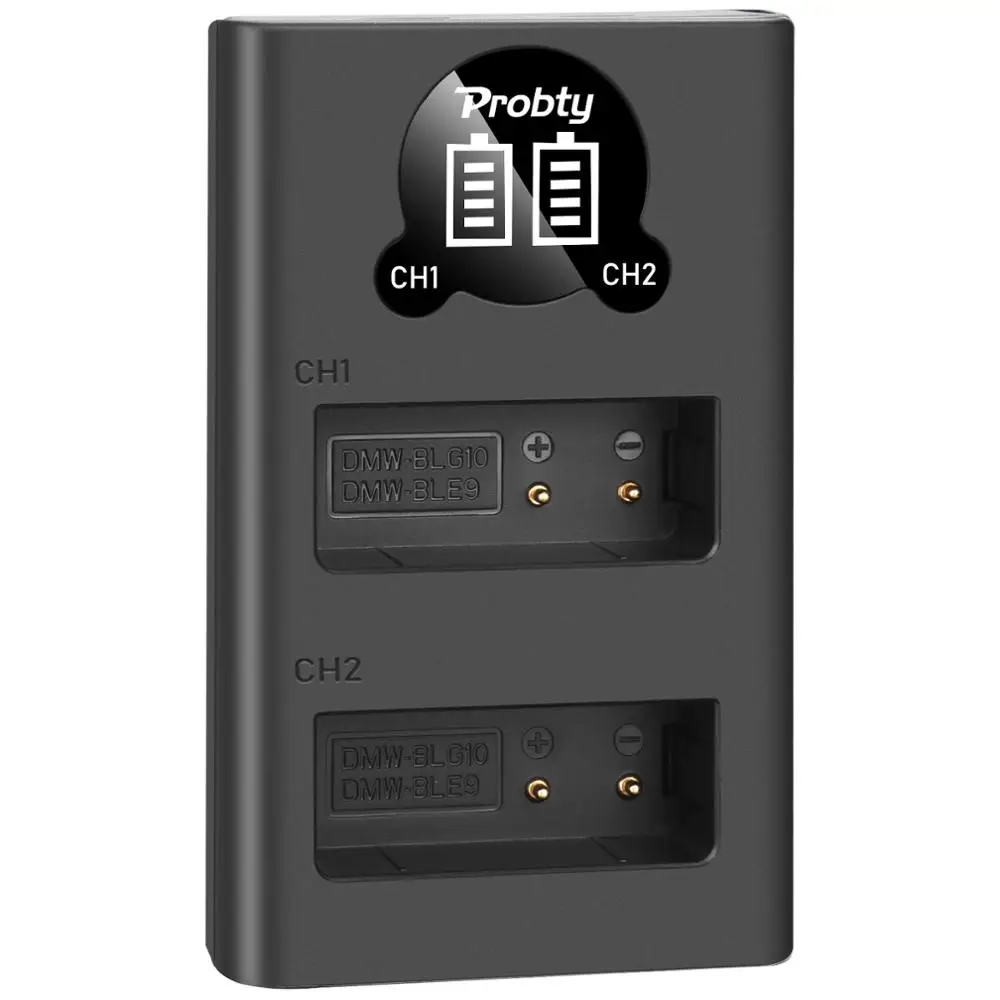 Зарядное устройство PROBTY DMW-BLG10 для камеры, двойное зарядное устройство с ЖК-дисплеем для Panasonic LUMIX GF5 GF6 GX7 LX100 GX80 GX85