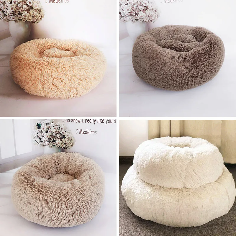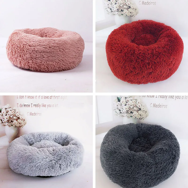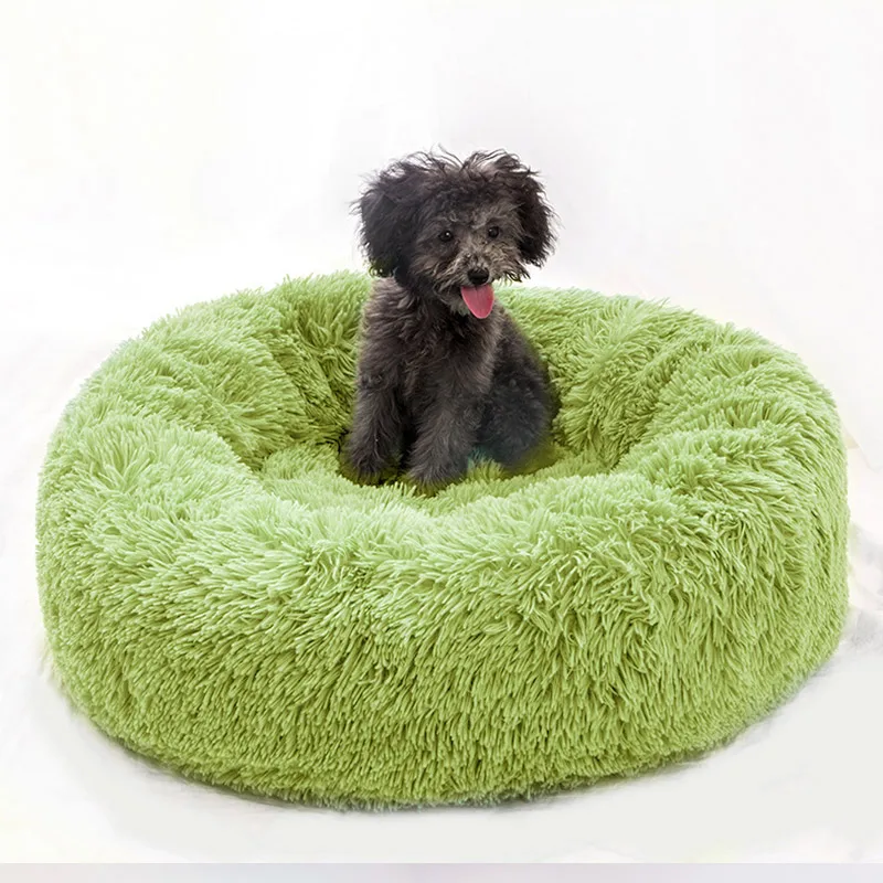 Лежанка для кошек, круглые плюшевые, зимний теплый коврик для сна, мягкая длинная плюшевая корзина для собак, переносная Лежанка, товары для домашних животных