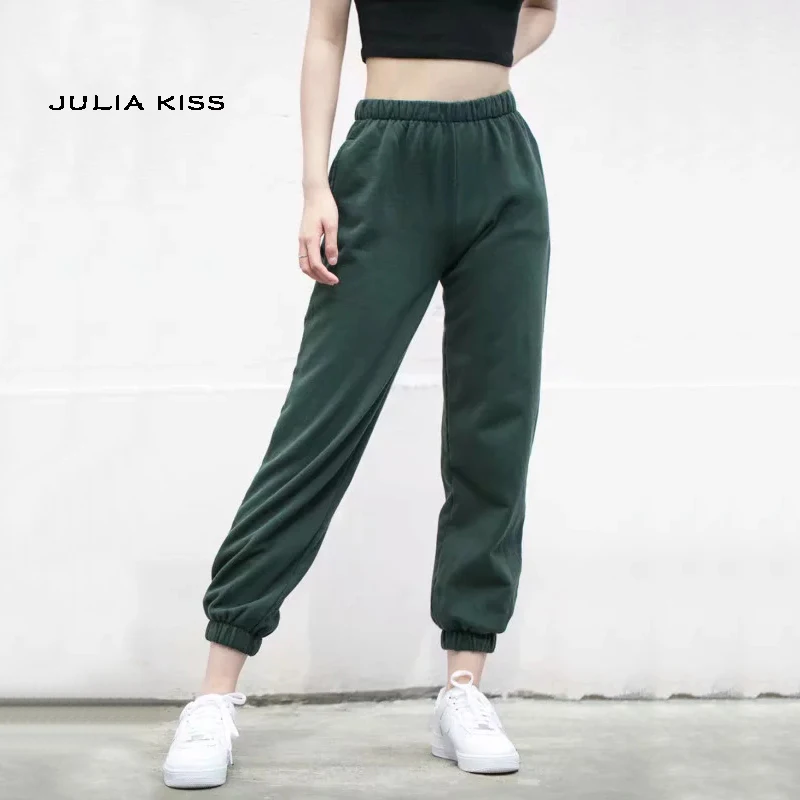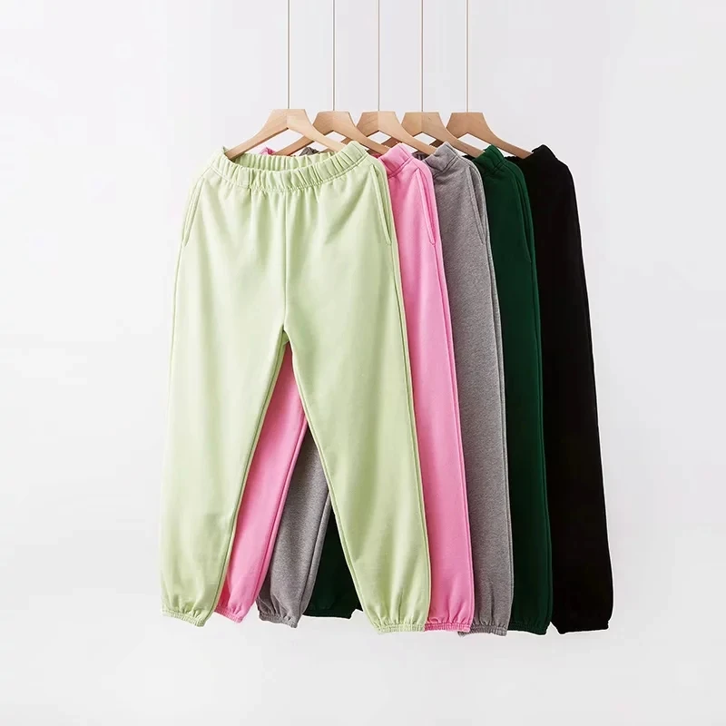 Женские плотные и удобные хлопковые спортивные штаны с эластичным поясом, боковыми карманами и эластичными манжетами