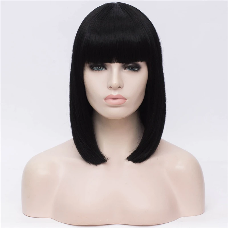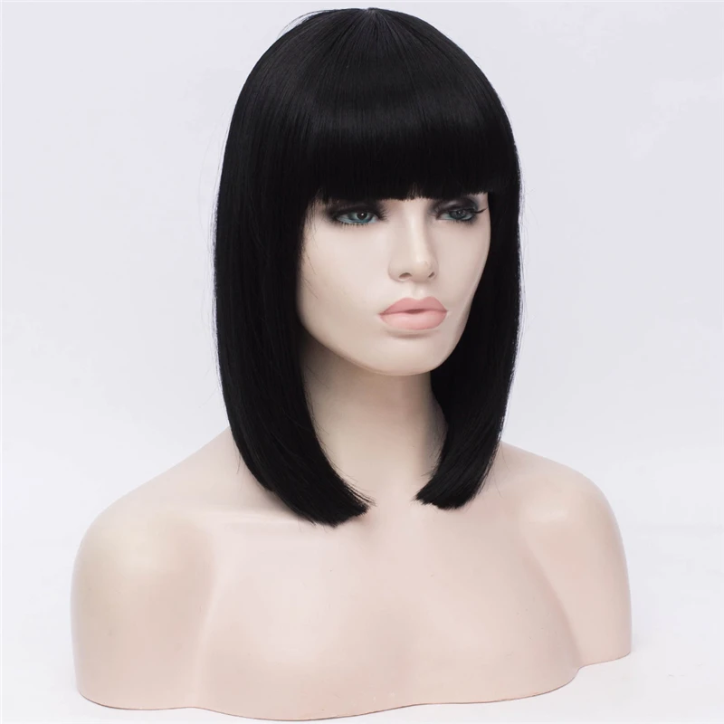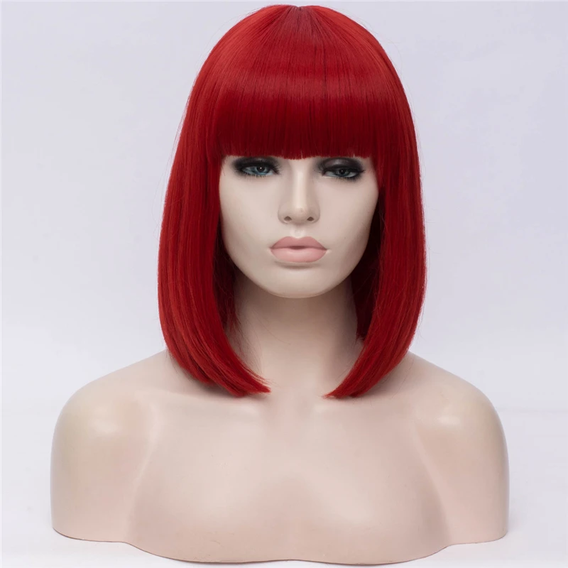 MSIWIGS синтетические 14 дюймов прямые короткие парики боб с челкой синий золотой красный черный белый фиолетовый зеленый коричневый парик для косплея женский