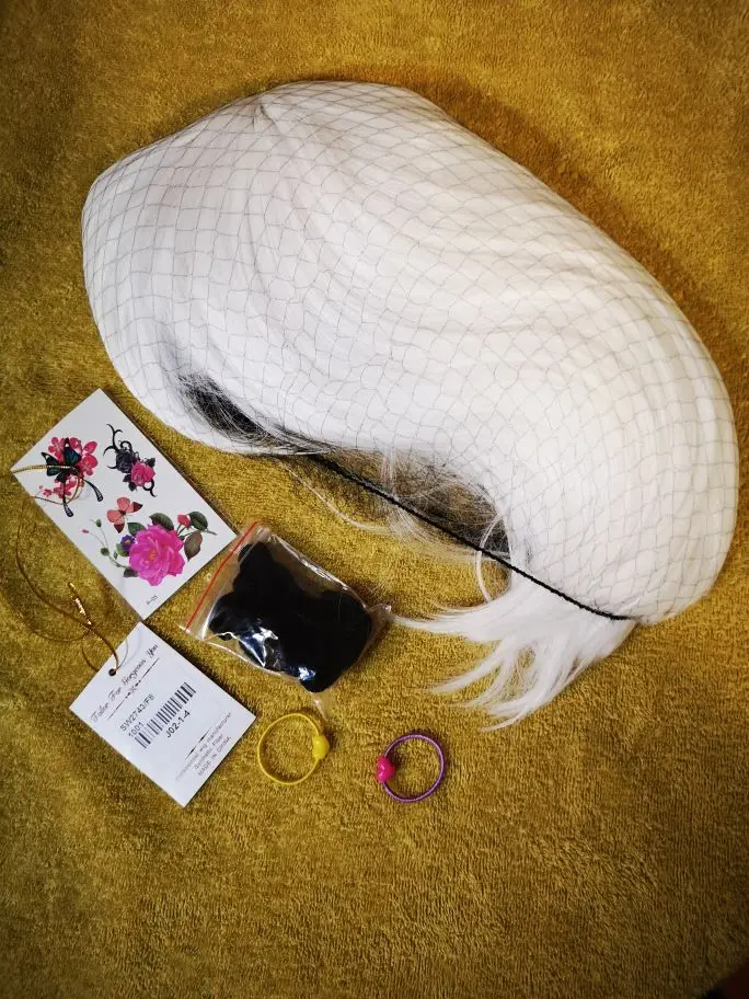 Парик пришёл в Киев за 3 недели. Продавец в подарок положил шапочку, 2 резиночки для волос и временные тату. Выпало несколько волосинок, но не сильно. В качестве эксперимента - парик удачная вещь