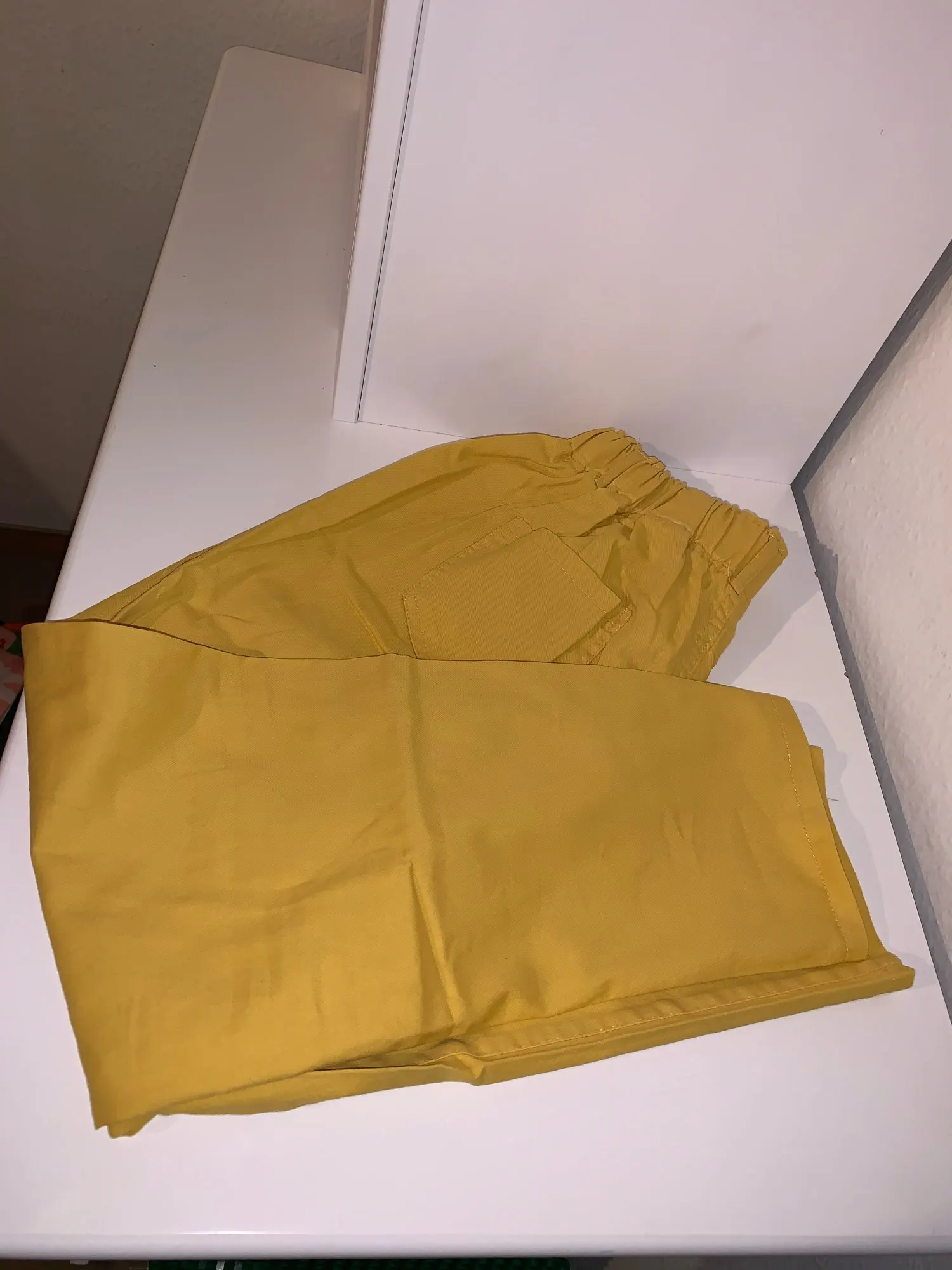 Добрый вечер. Дождалась своих брючек. Даже не могу высказать всю степень благодарности! На картинке непонятно, боялась Но брюки - прелесть.! Тонкий приличный, хлопок.! Сшиты хорошо, скроен хорошо!. Учитывая, что я маленькая, 152.мне они как брюки, лучше и не бывает. Спасибо! Цвет приятный, не лимонный, приглушенно жёлтый. 5 Звёзд.