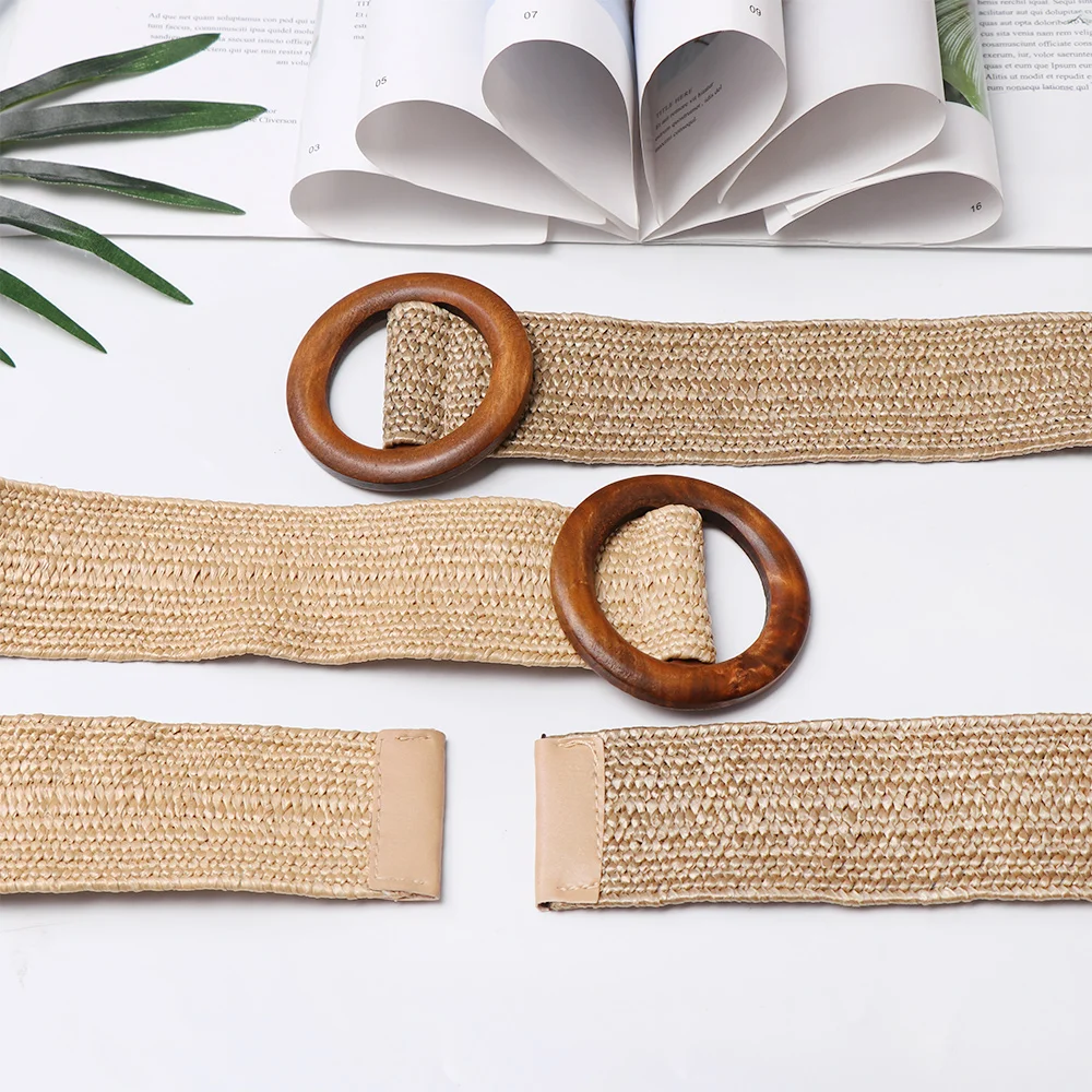 1 шт. 2020 ремень для платья с круглой деревянной пряжкой Для Женщин Повседневный Женский Плетеный широкий ремень женский дизайнерский Плетеный Эластичный Ремень из полипропилена и соломы для девушек