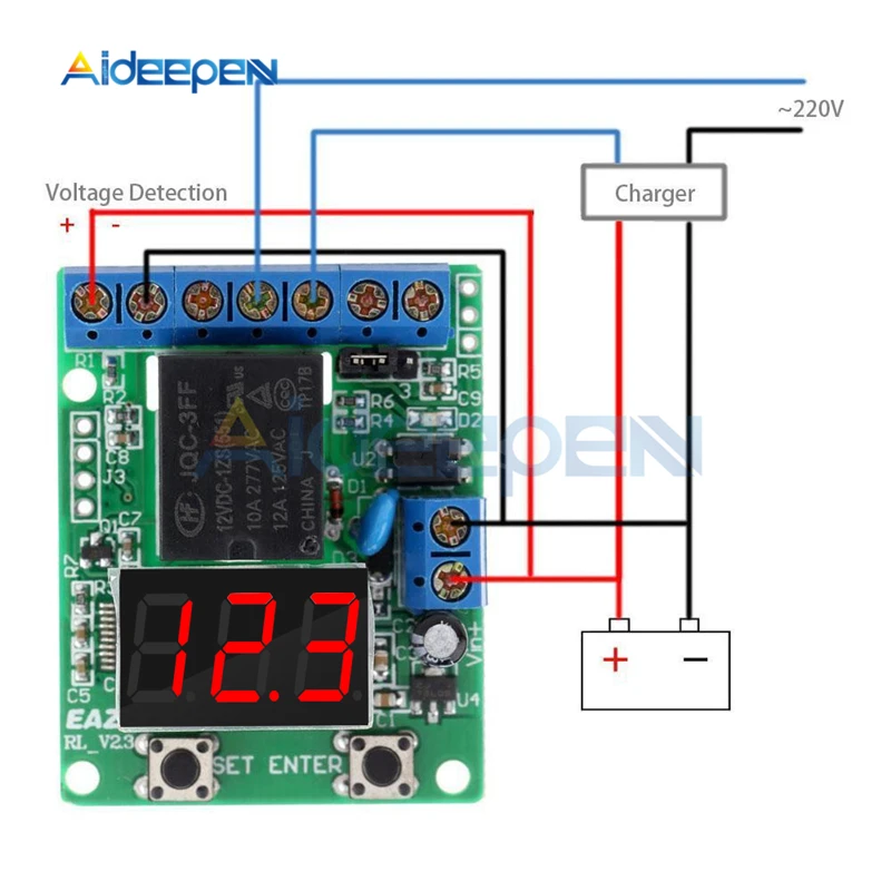 DC 12 В 24 В светодиодный цифровой контроль релейного переключателя Модуль платы релейный модуль обнаружения напряжения зарядка монитор выгрузки тест