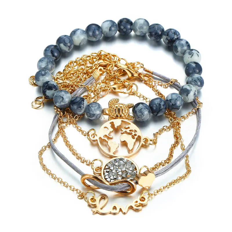 4 шт.компл. набор женских браслетов из цепочек с бусинами в богемно...