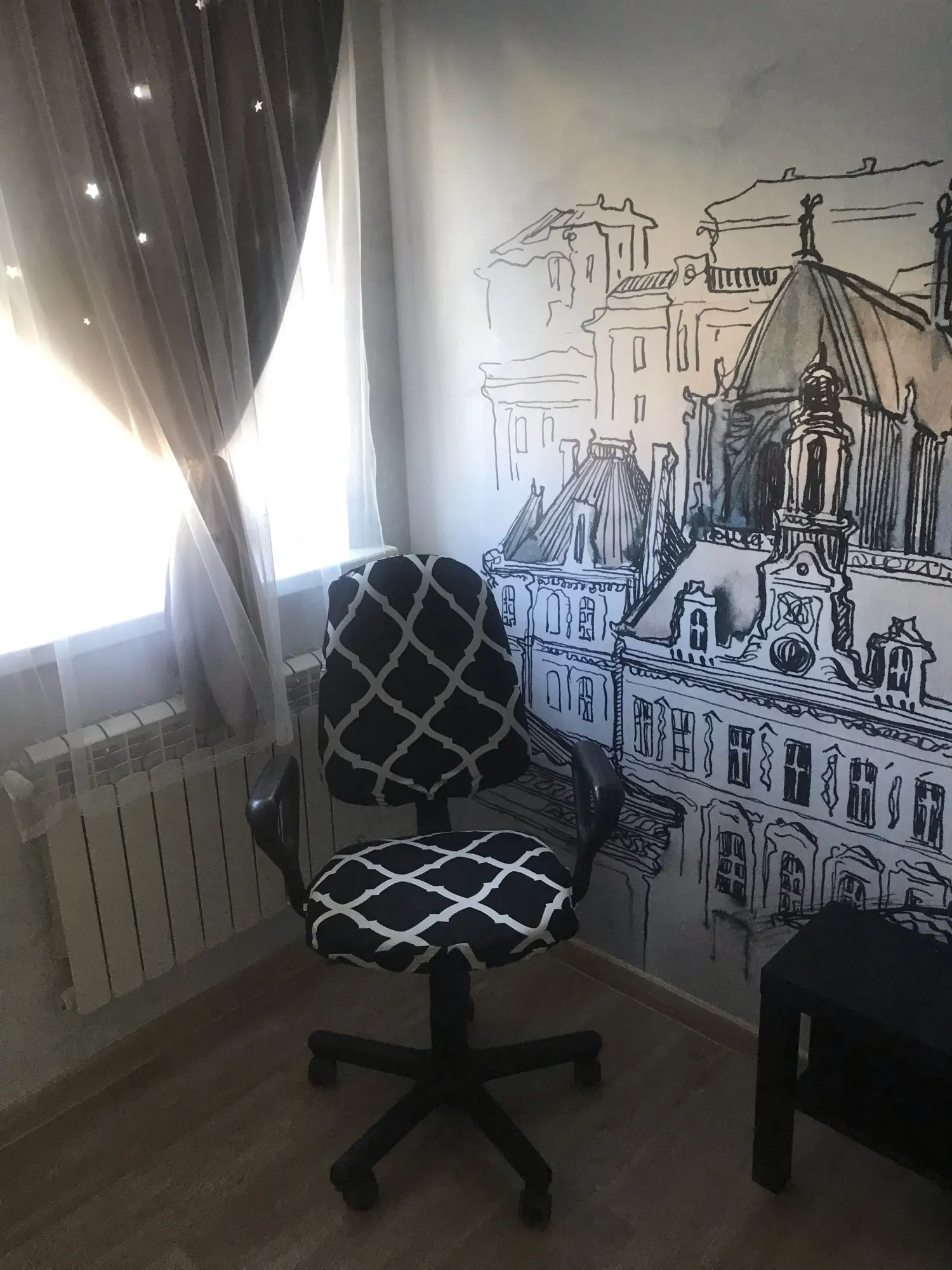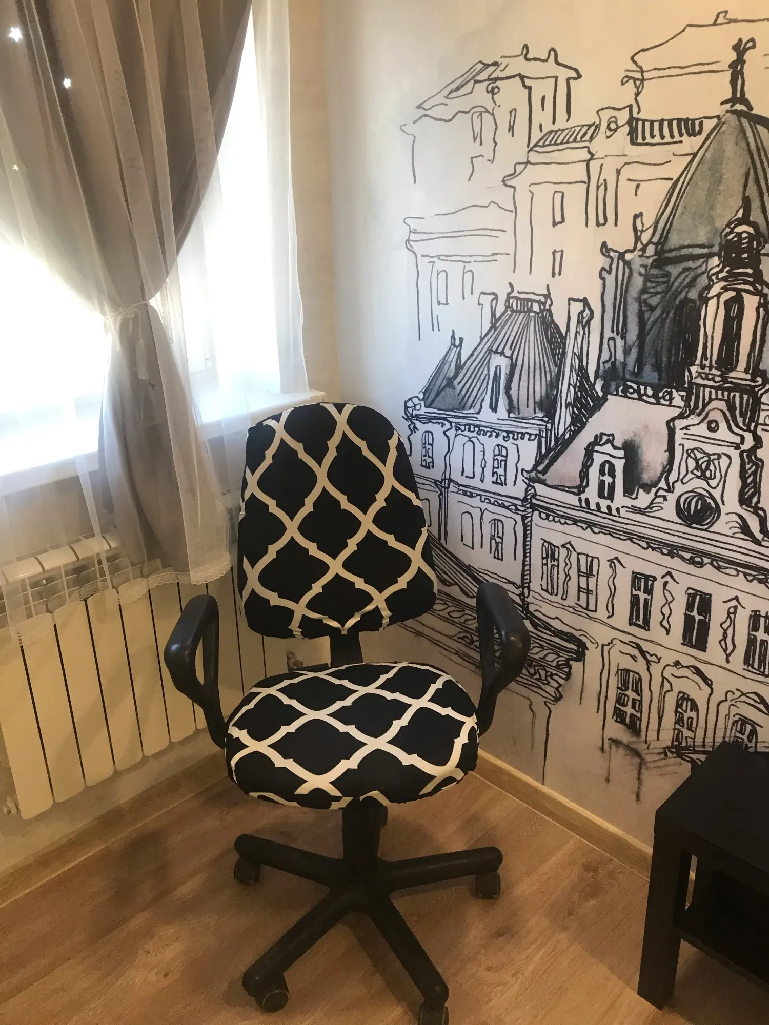 Качество неплохое. Доставка недолгая. Пока не примеряли на рабочий стул. Надеюсь, налезет))