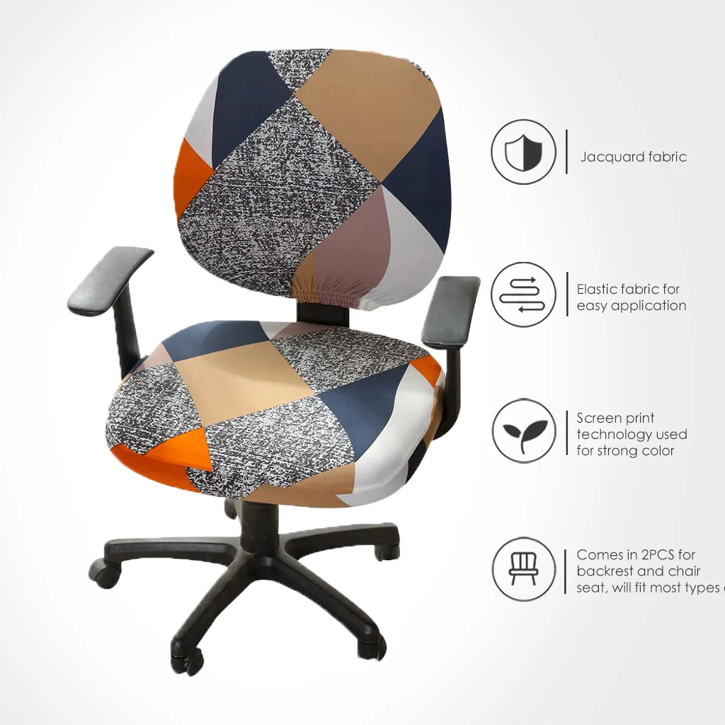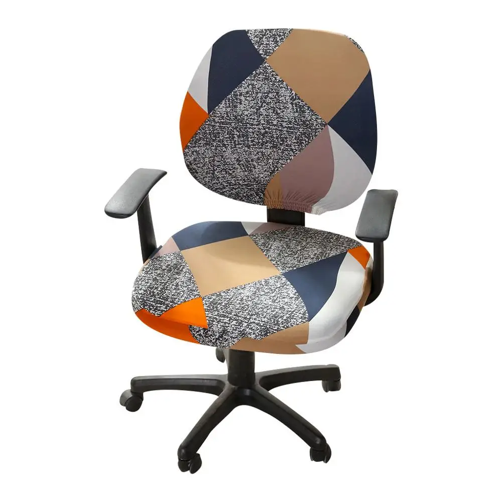 Чехол на компьютерное кресло из спандекса с принтом, чехол для офисного кресла, комплект из 2 предметов для спинки и основания стула