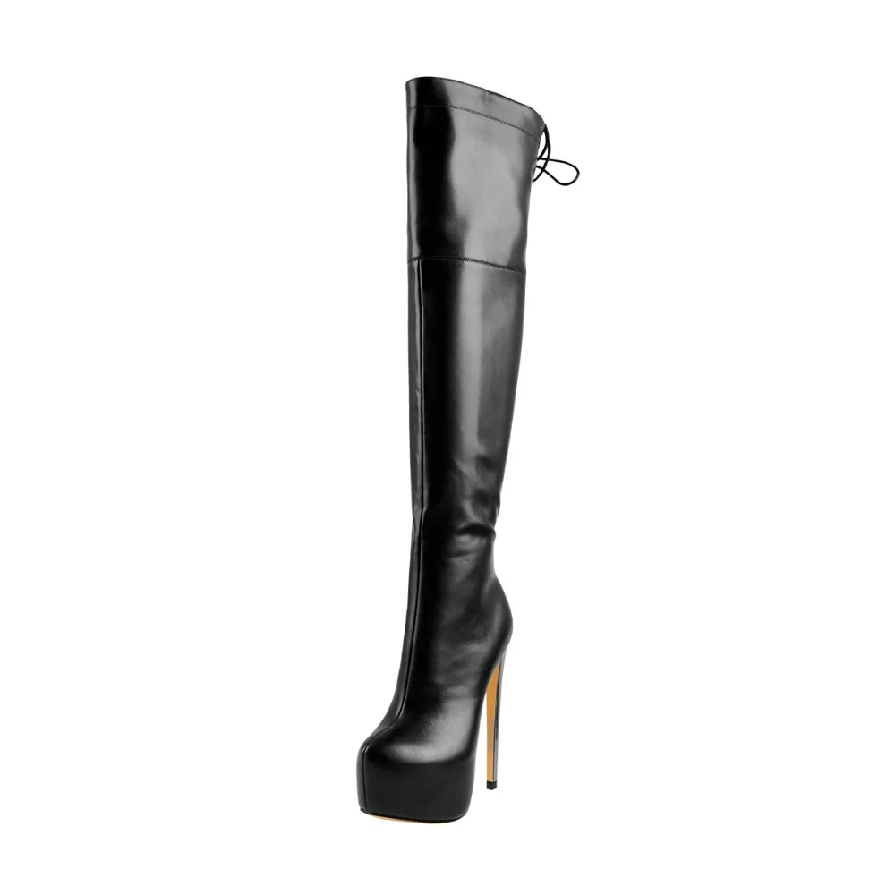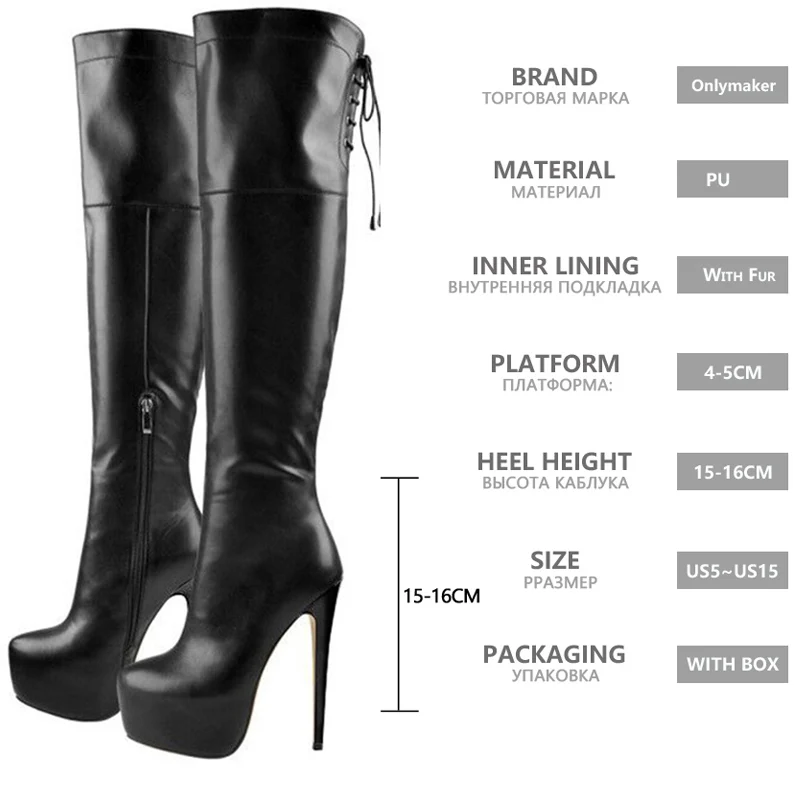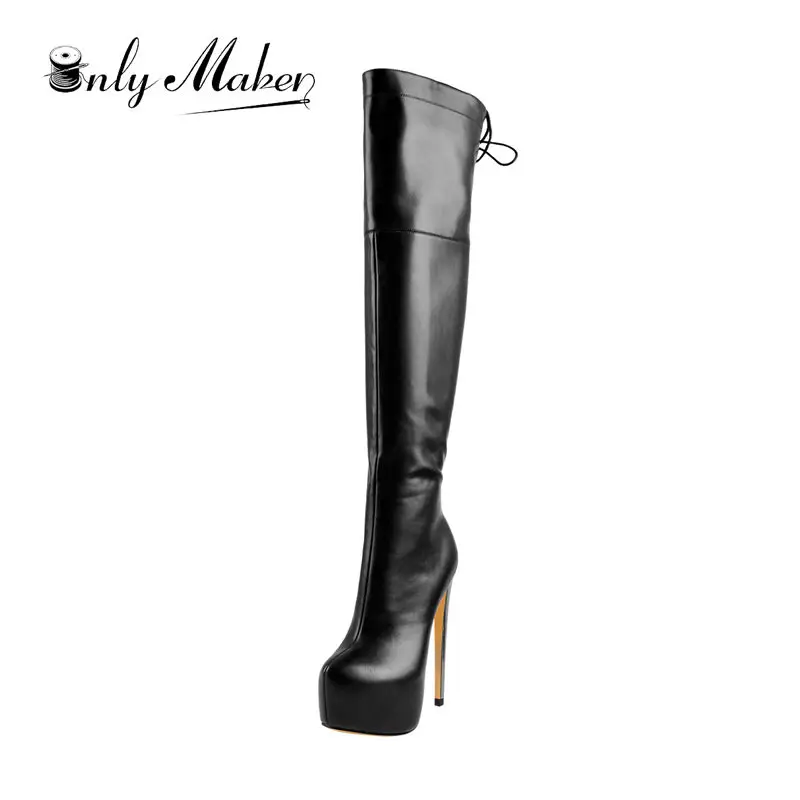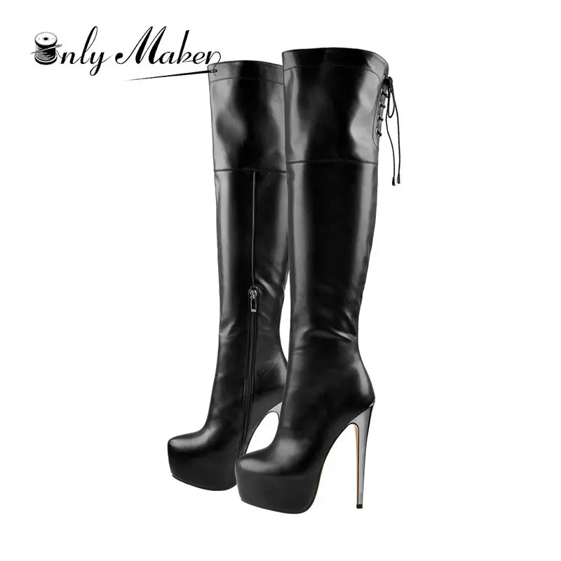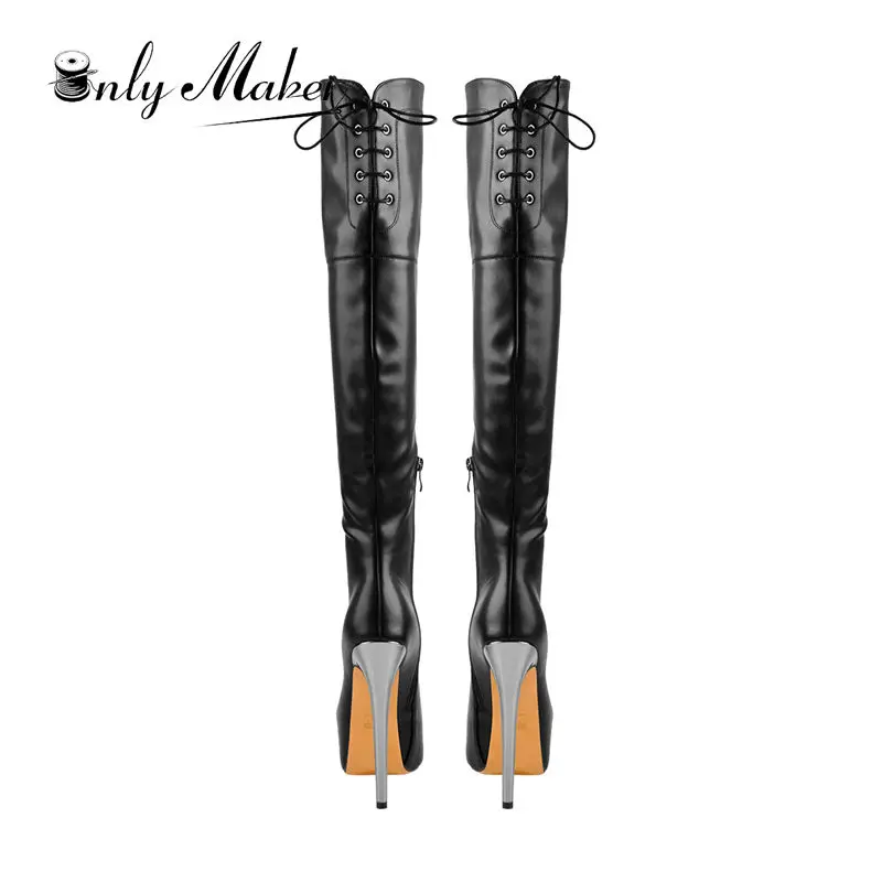 Onlymakerмодные женские сапоги на тонком высоком каблуке; Пикантные Сапоги выше колена на шнуровке и молнии; Размера плюс