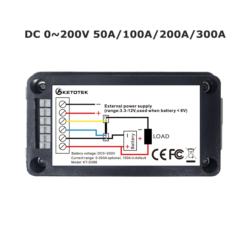 Вольтметр постоянного тока Амперметр 0-200 в 10A/50A/100A/200A/300A измеритель мощности Inpedance емкость время работы SOC монитор
