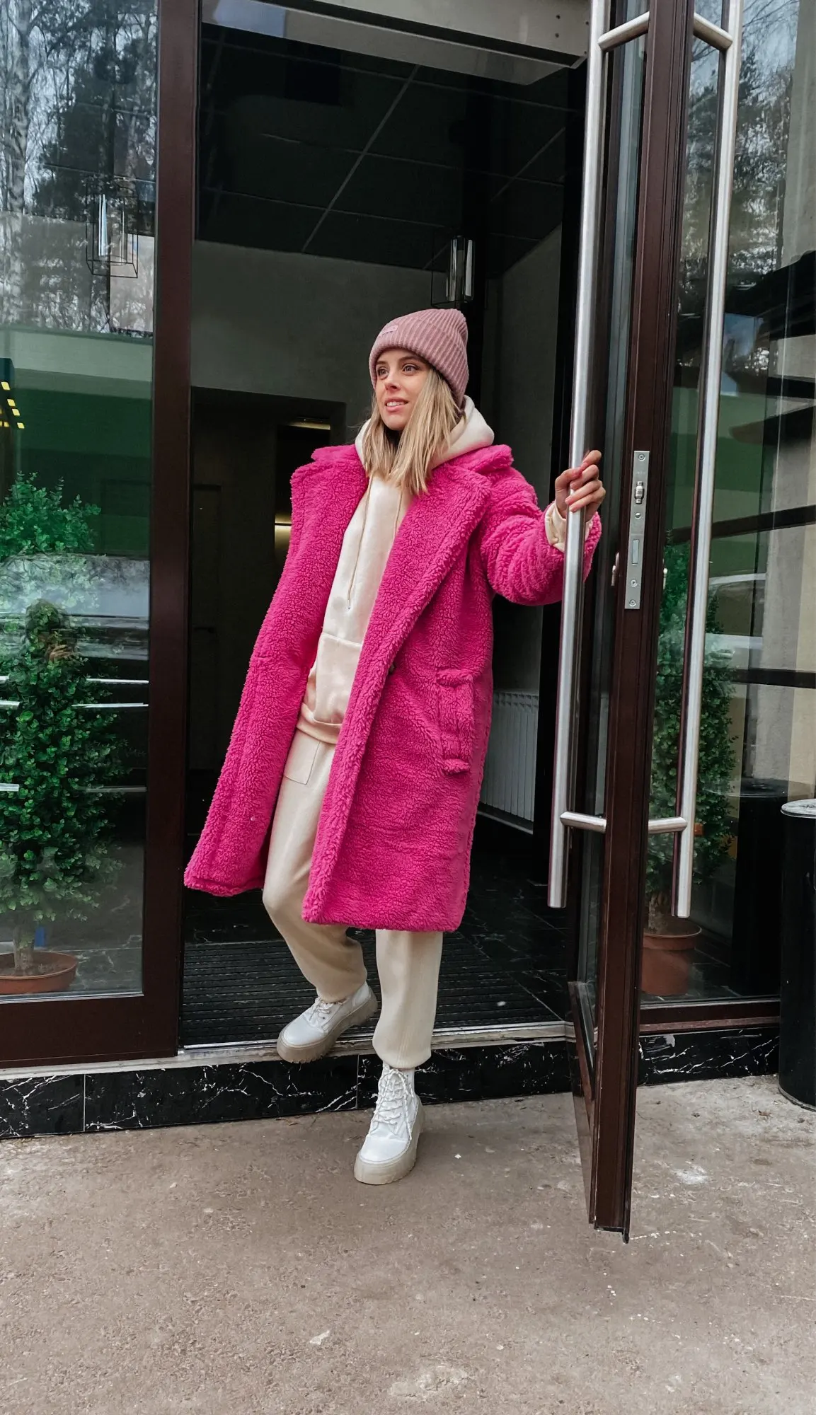 Шуба огонь, конечно не надо сравнивать ее с максмарой, тут иллюзий быть не должно, но выглядит за свои деньги прекрасно. Лично на май взгляд рукава коротковаты и в них задувает, но это мелочи. Цвет более яркий, чем на картинке, скорее фуксия. Шла очень долго, но это не вопрос к продавцу. Однозначно рекомендую! Размер подошёл идеально, оверсайз, но не мешок. Пуговица только одна, имейте ввиду, шея сильно открыта, нужен очень большой шарф, если вы не привыкли к открытой шее
