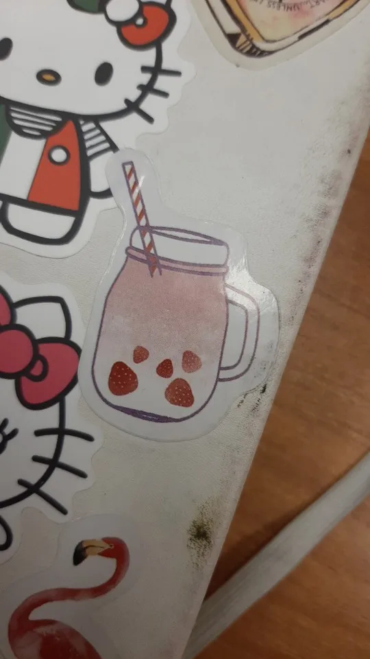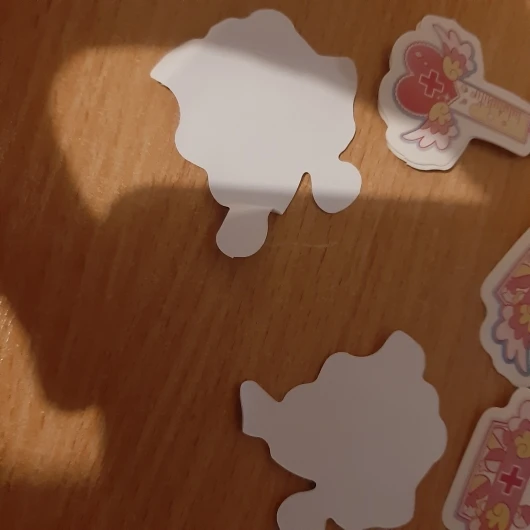 Наклейки милые, но одна из них по какой-то причине нарисована, Я распахнул коробку и просмотрел наклейки, и у этой только порвана.