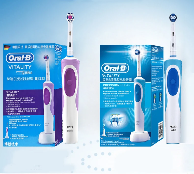 Oral B Vitality Электрическая зубная щётка перезаряжаемая зубная щетка Точная очистка 2 минуты таймер + 4 подарочные сменные головки Бесплатная доставка