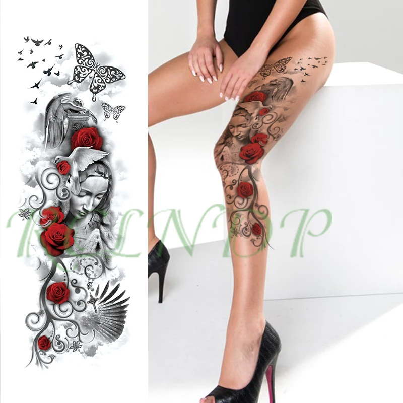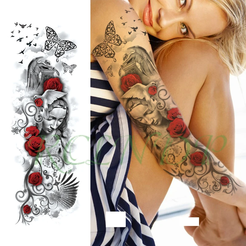 Водостойкая Временная тату-наклейка, роза, крылья ангела, птица, Бабочка, лоза, полный рукав, флэш-тату для мужчин, женщин и девочек