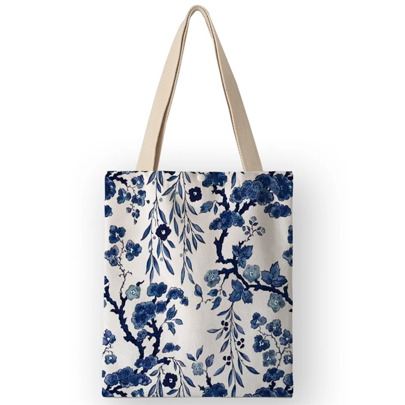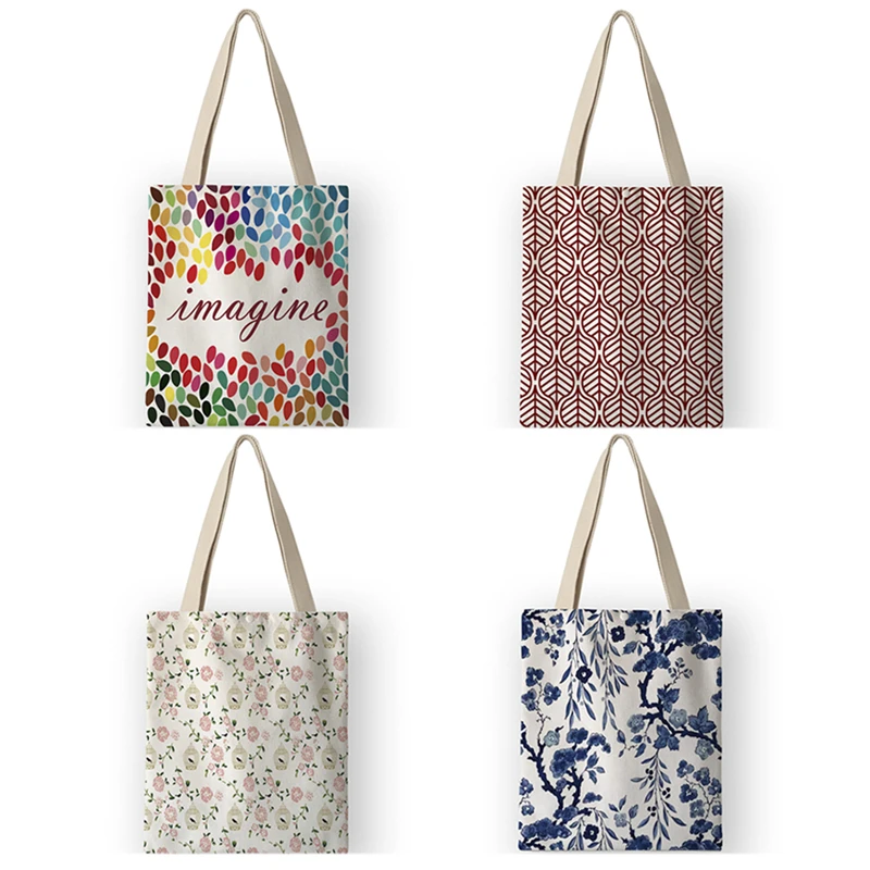 Холщовая Сумка на плечо с цветочным принтом AKB01099, Женская Цветочная Сумочка, Экологически чистая многоразовая сумка для покупок, большая емкость с карманом