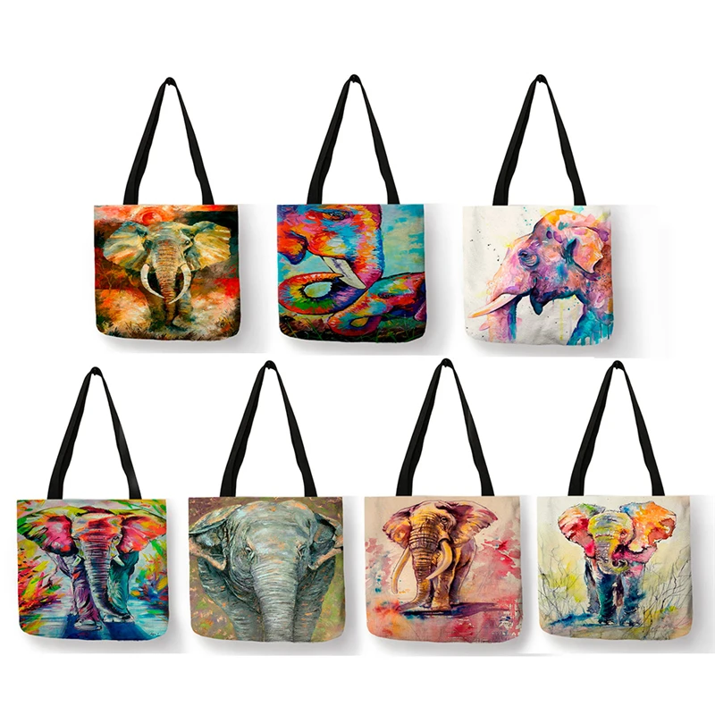 Таинственный Индийский Слон, принт, сумка-тоут, женские сумки, красочная картина маслом, эко, сумки для покупок, оптовая продажа