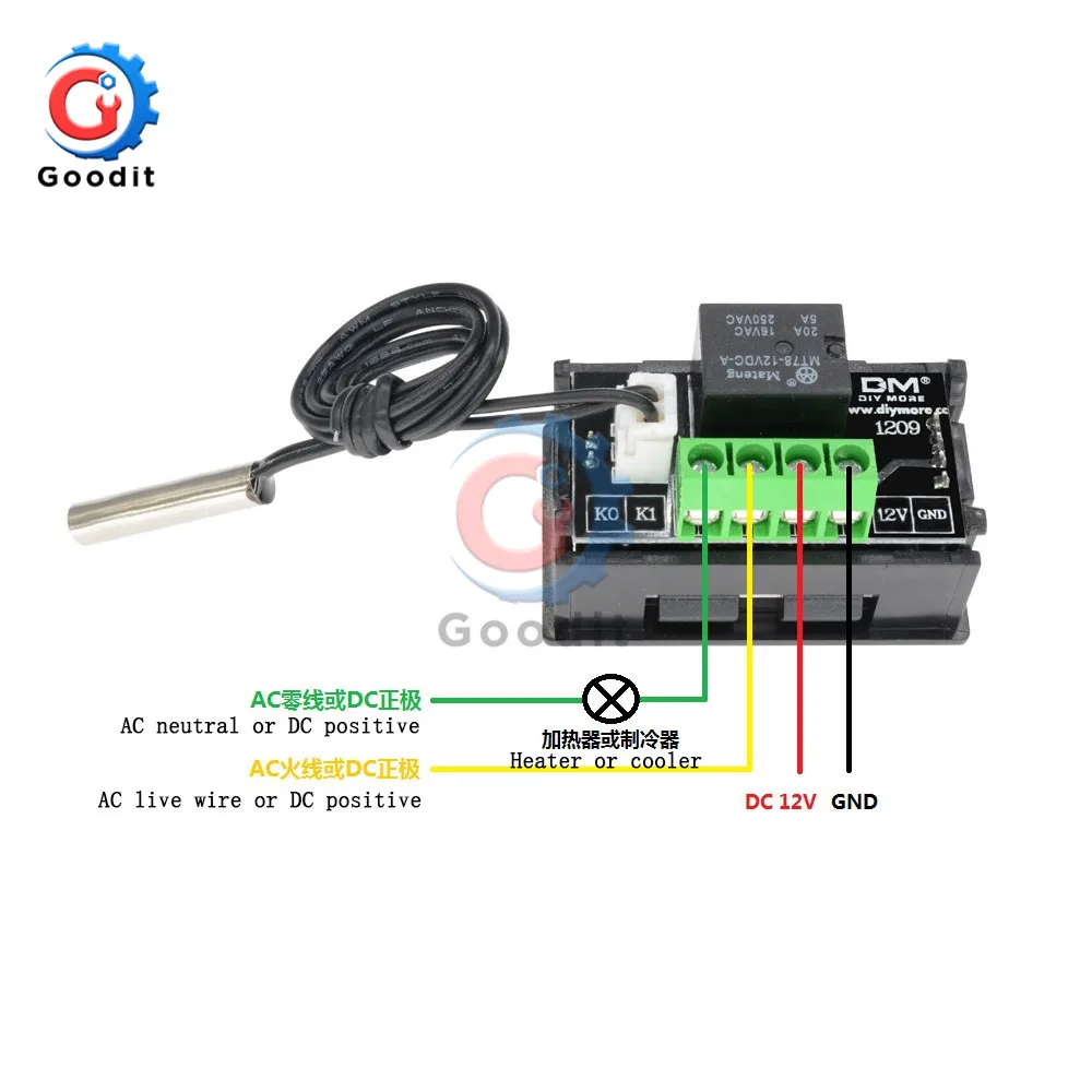 Цифровой ЖК-контроллер температуры W1209, 0,28 дюйма, термометр, датчик NTC, Датчик постоянного тока 12 В для внутреннего и наружного использования, автомобиля с чехлом