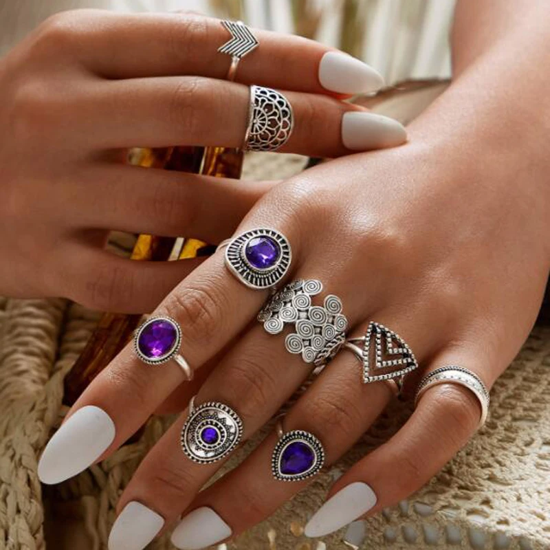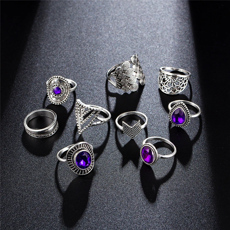 Кольцо женское Винтажное с фиолетовой Стразы, 9 шт.компл., 9 шт., 8261
