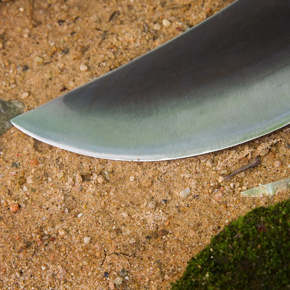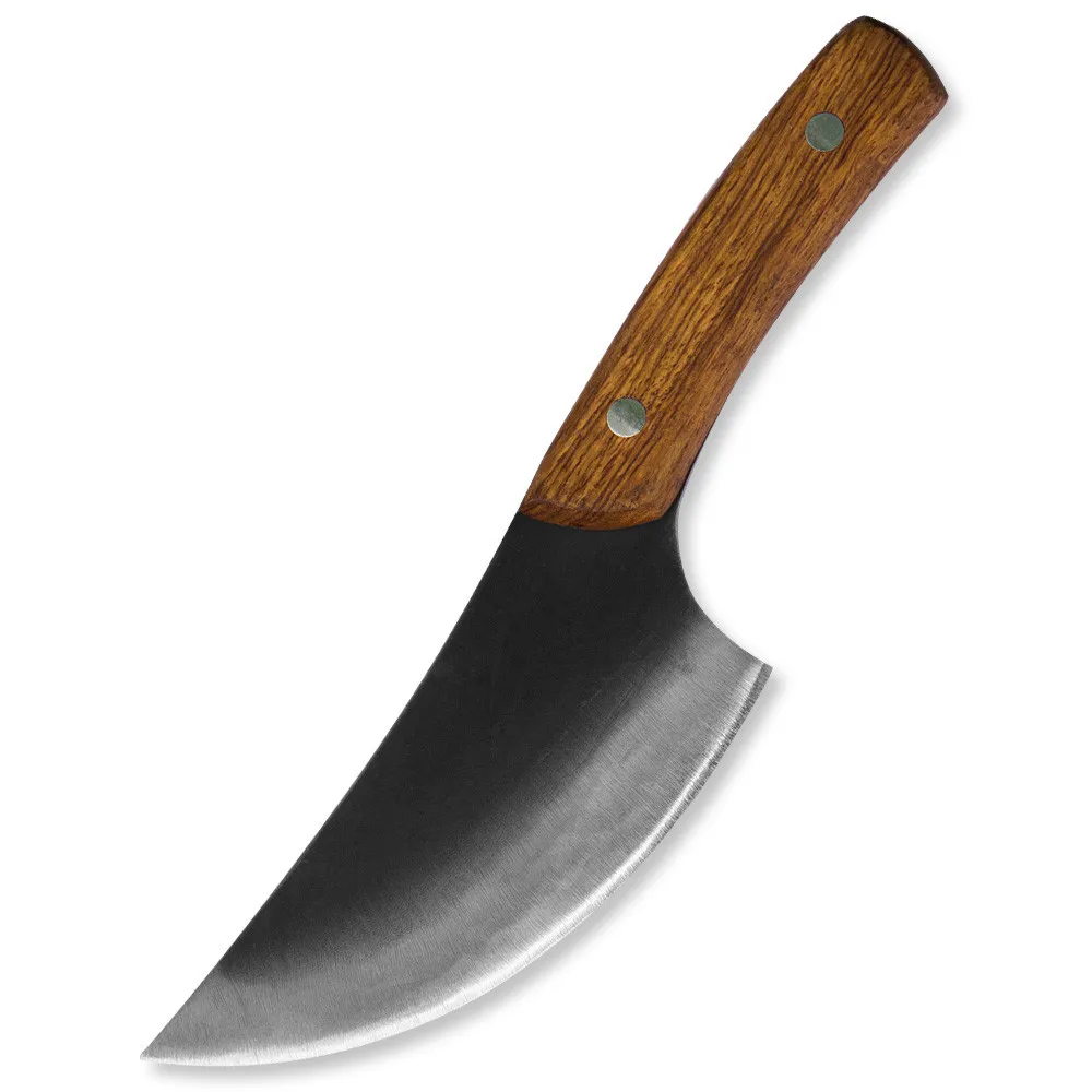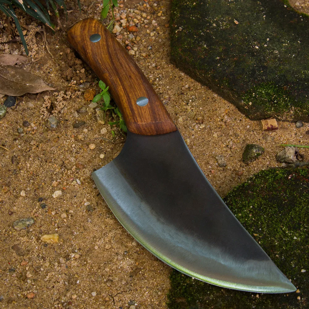 Китайский кухонный нож, выкованный вручную. Изготовлен из марганцевой стали, ручка и лезвие интегрированы без пайки, что является прочным и прочным для устранения сломанной ручки. Ножи заточены вручную работниками с более, чем 30-летним опытом работы с помощью натуральных нож шлифовальные добываемых из Mount Emei. По сравнению с кухонными ножами, изготовленными механическими способами, срок службы таких ножей больше. Кованые ножи имеют более высокое содержание углерода. Внимание следует обратить на очистку, кислотные или щелочные вещества, которые не могут оставаться На лезвиях в течение длительного периода времени. Такой нож должен быть вытерт сухой после очистки. Некоторые кулинарные масла могут быть применены на нем, если он не используется в течение длительного времени. И он должен быть помещен в сухом месте для хранения.