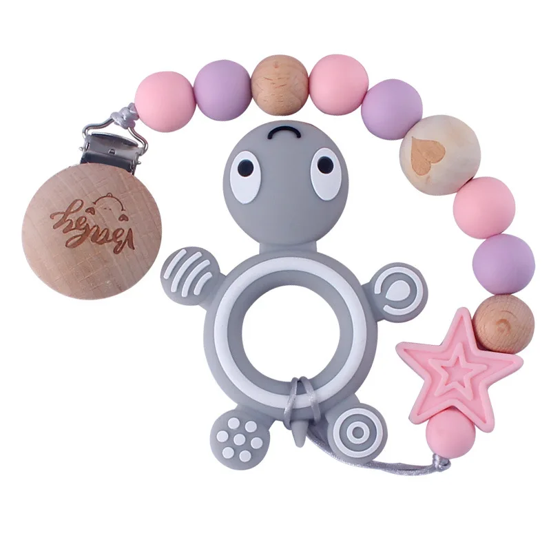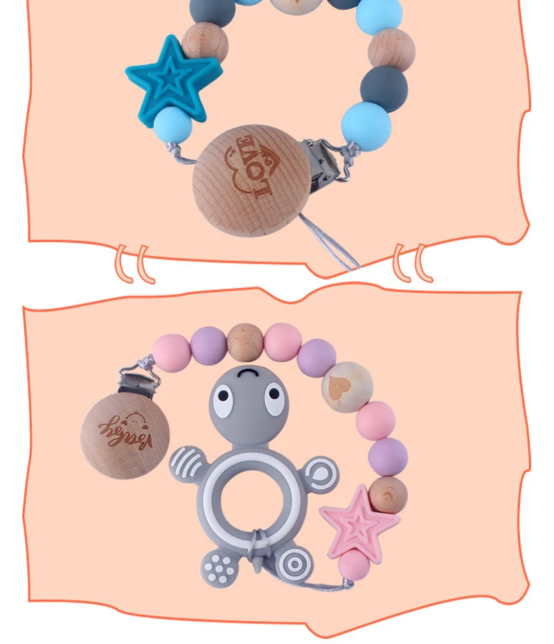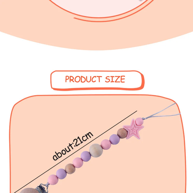Цепочка-держатель для соски детская из силикона и дерева, клипы на цепи