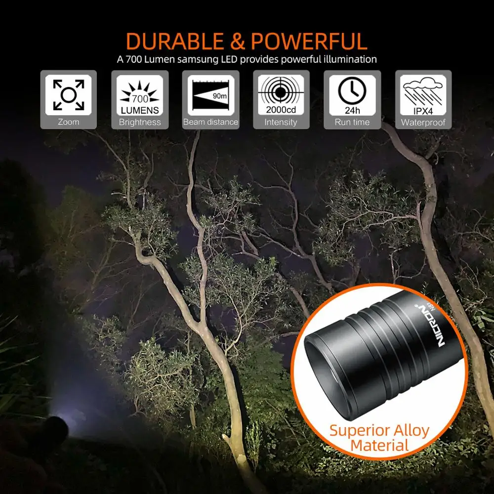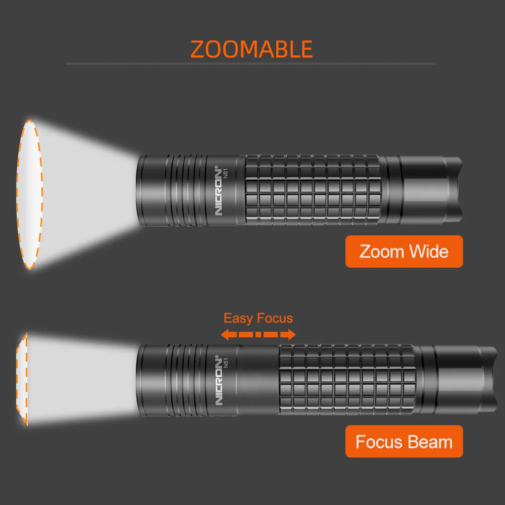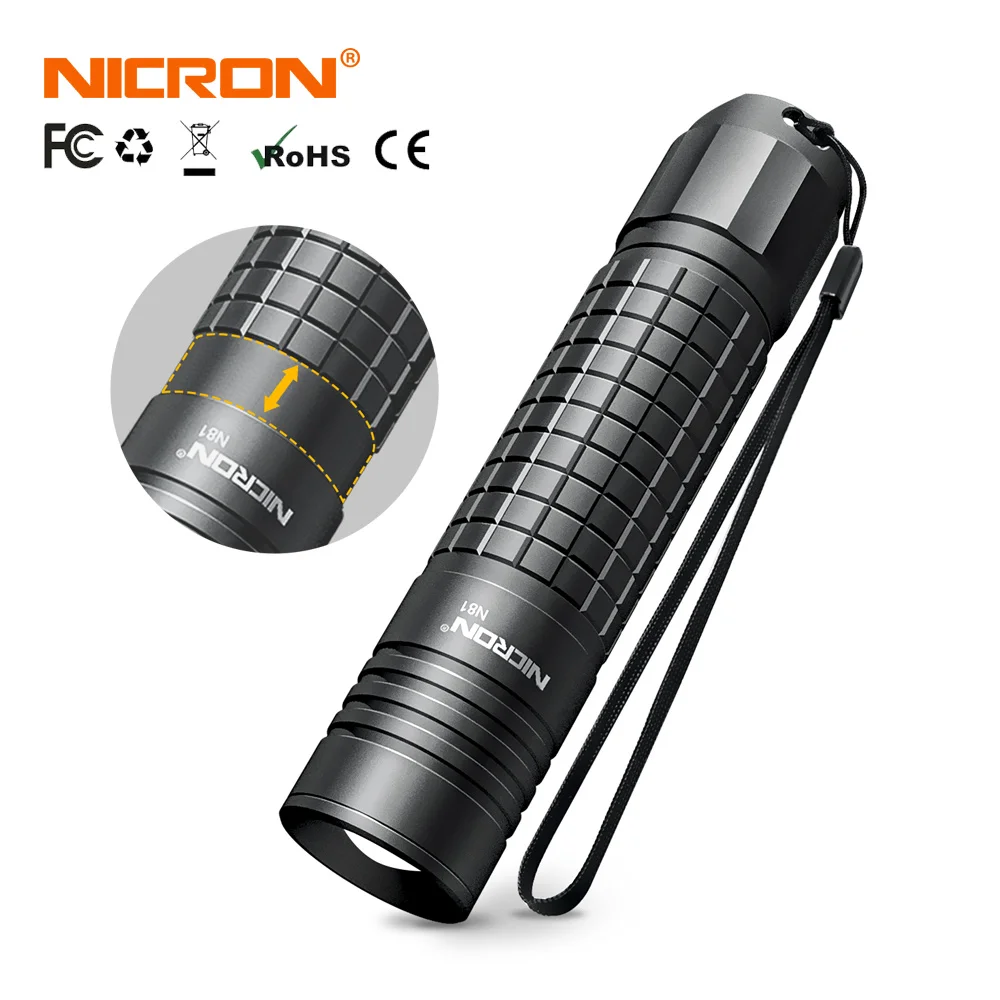 Светодиодный фонарик NICRON, масштабируемый, 18650 лм, высокие Люмены, батареяAA, водонепроницаемость IPX4, 5 режимов, для езды на улице, светодиодный фонарик N81