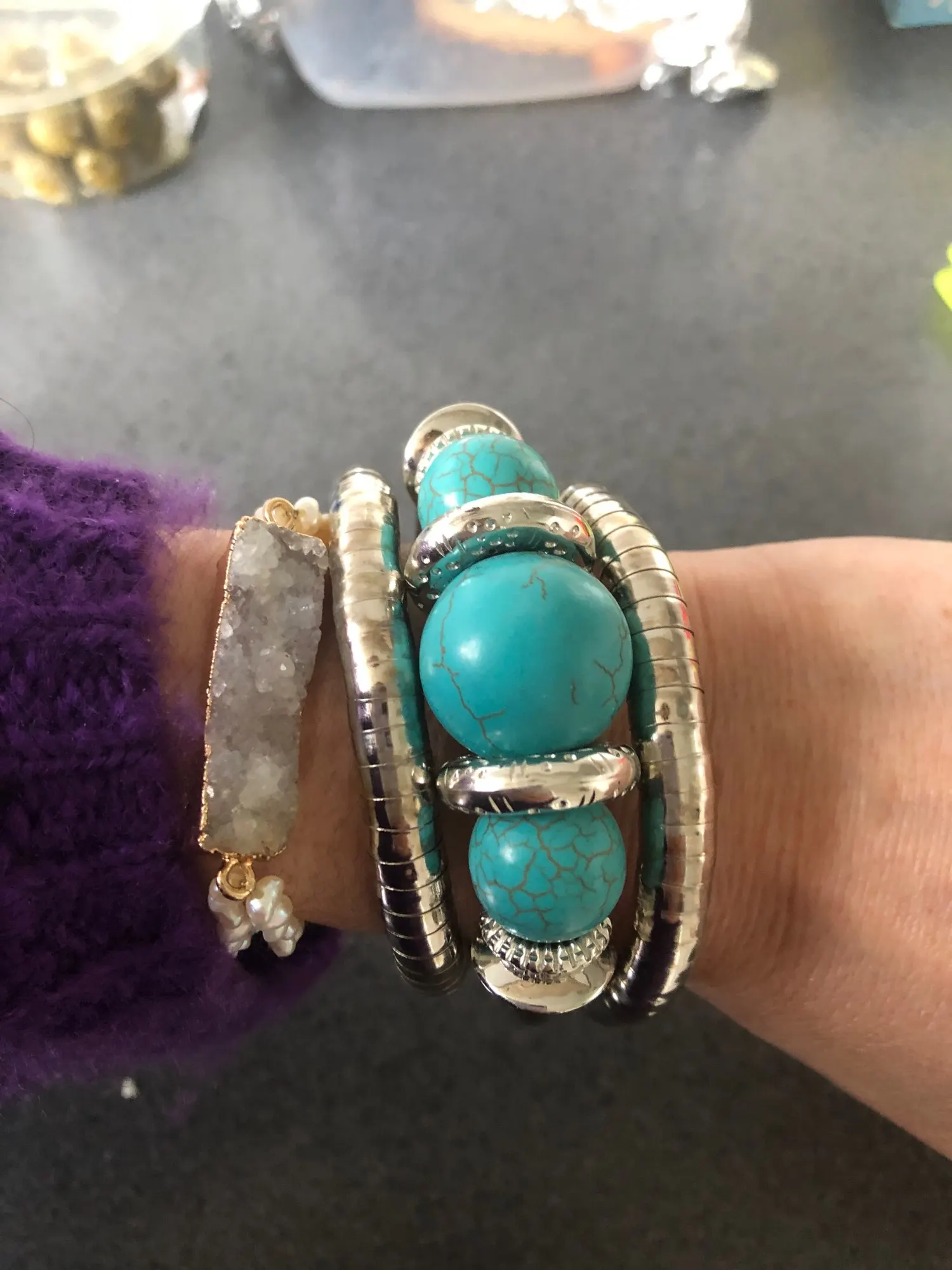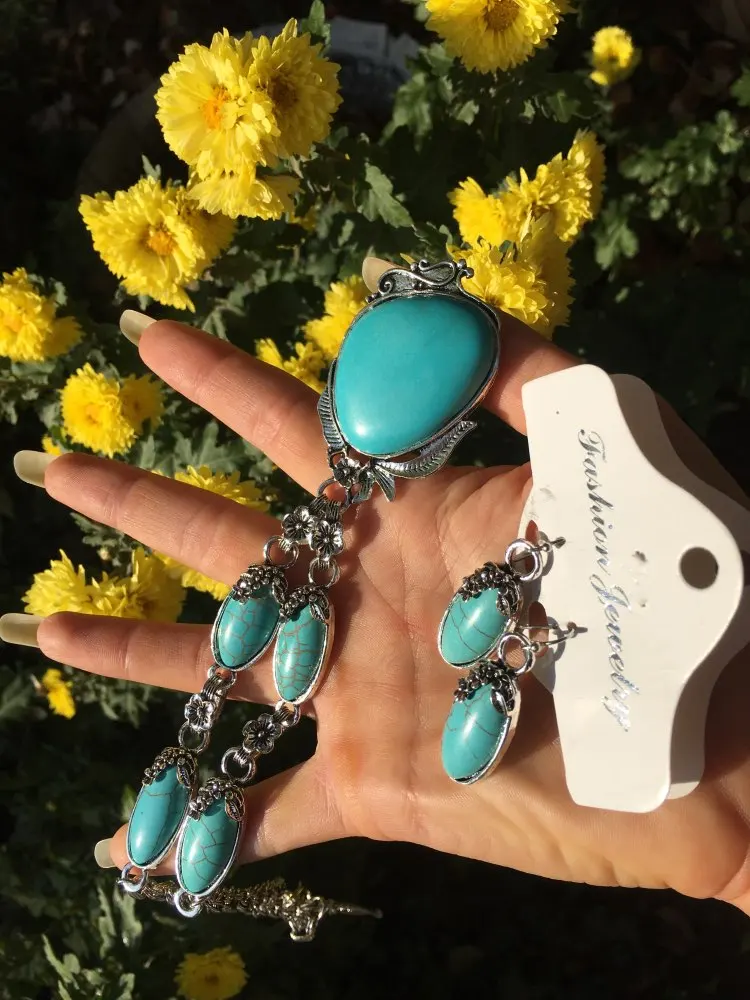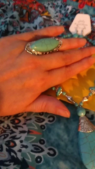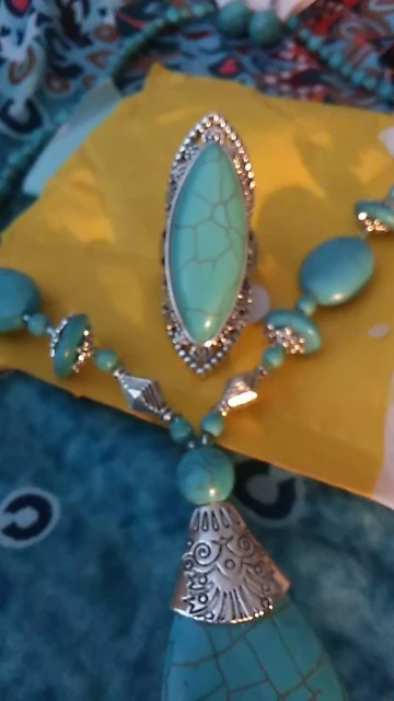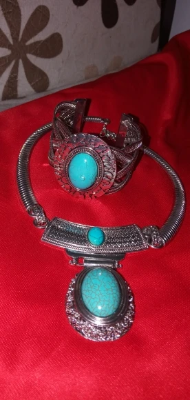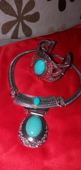 Muy hermosos juegos de collar, anillo y pendientes, está hermoso el juego las piedras son turquesas naturales definitivamente hermoso, recomiendo mucho la tienda y el vendedor excelente persona y siempre estuvo atento a mi pedido, gracias y bendiciones.