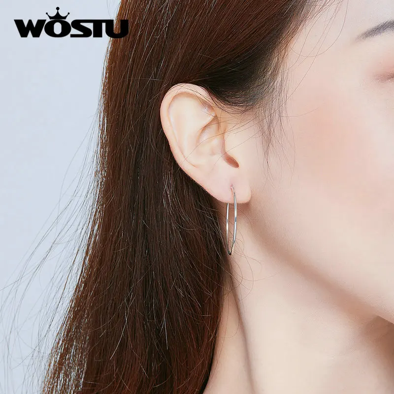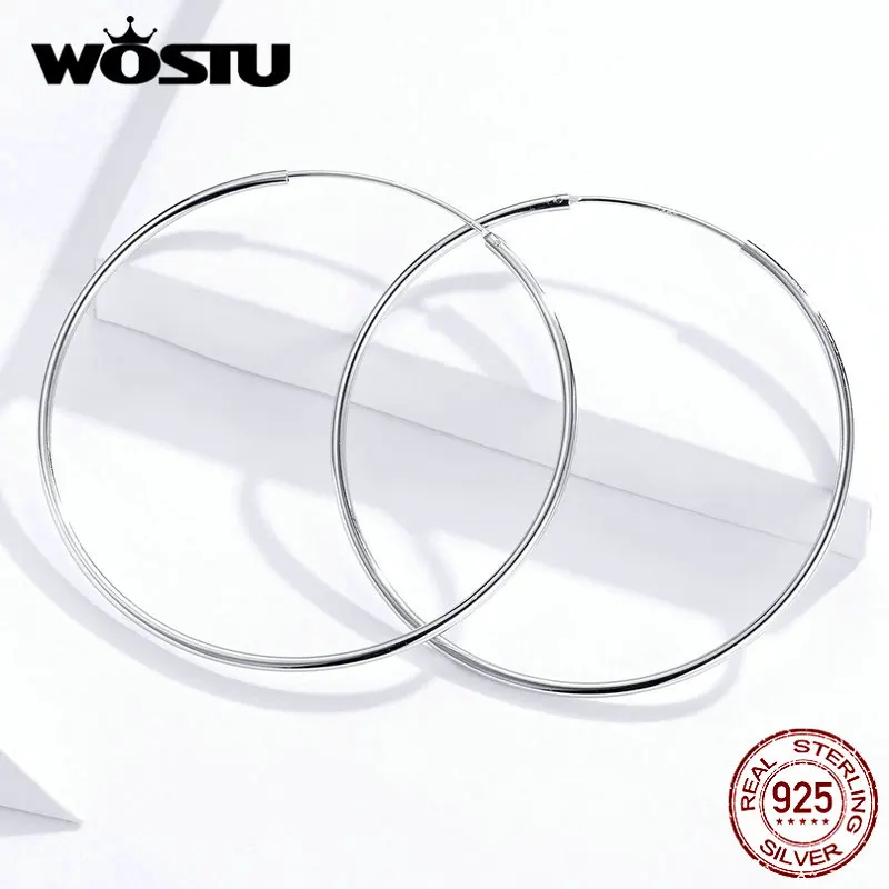 Женские серьги-кольца WOSTU, простые круглые серьги из стерлингового серебра 925 пробы, свадебные ювелирные изделия FIE710