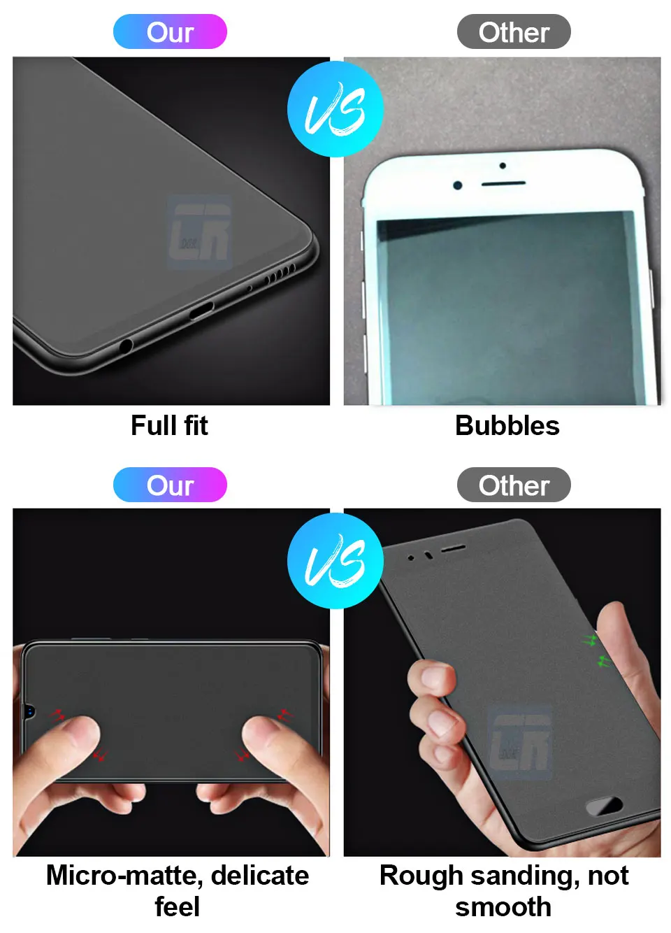 Матовое стекло просто песня! пальцы скользят как на аэрохоккее, свет не бликует. упаковали отлично, все целое. наклеиться может с небольшими пузырьками 1мм, под ними нет воздуха, через пару дней пропадут сами.