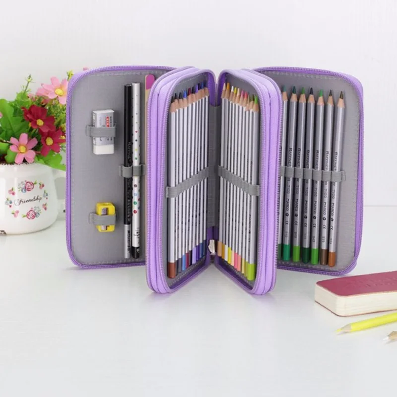 Милый пенал, школьный Чехол-Карандаш для девочек и мальчиков, пенальти, большой чехол-карандаш, три молнии, 52 отделения, коробка для ручек, Канцелярский картридж, комплект с сумкой