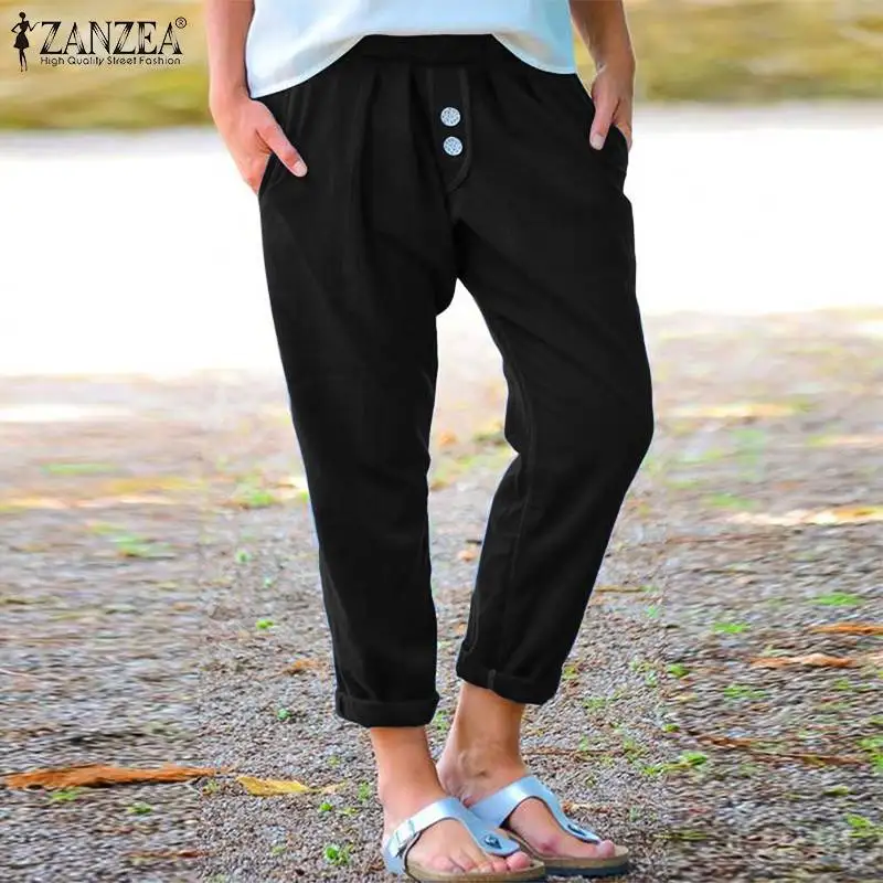 Брюки-султанки ZANZEA женские с поясом на резинке, повседневные однотонные винтажные брюки с принтом репы, хлопково-льняные черные штаны, осень
