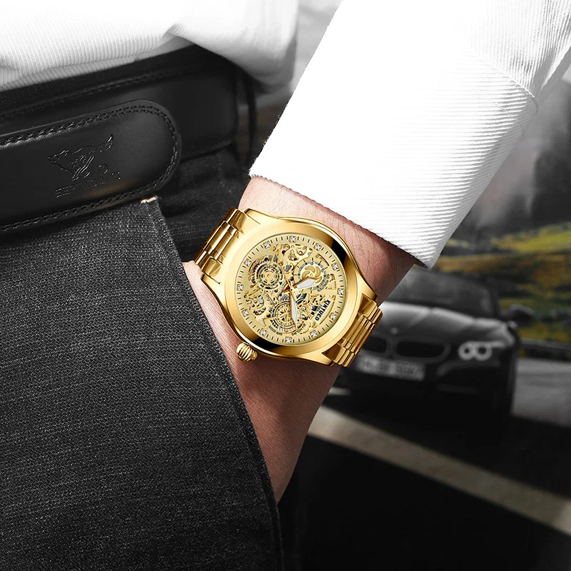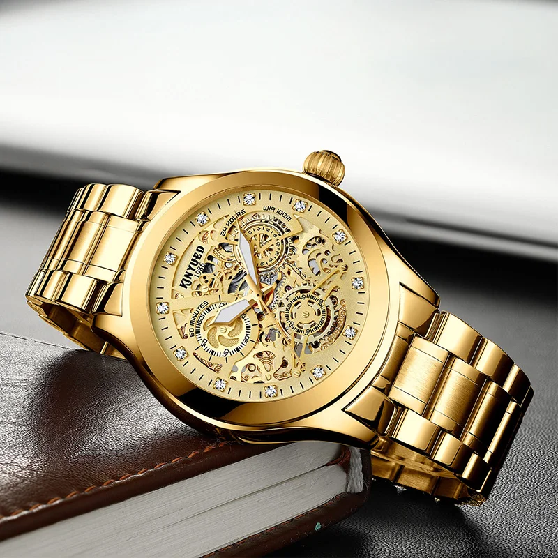 Мужские автоматические механические часы ведущей марки KINYUED золотые модные спортивные часы Роскошные Водонепроницаемые часы из нержавеющей стали с турбийоном