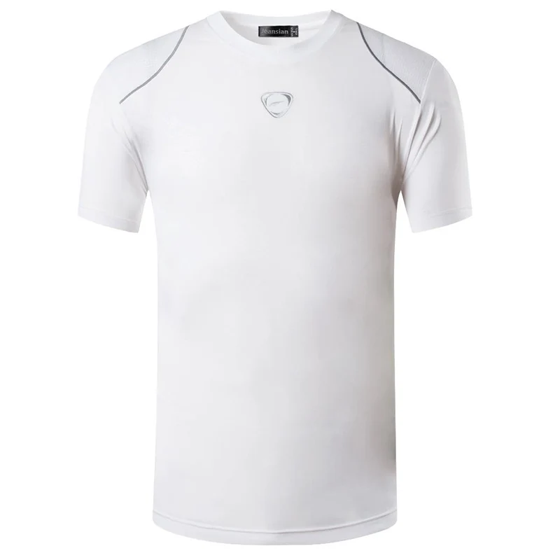 Jeansian Мужская Спортивная футболка, топы для тренажерного зала, фитнесс пробежки, футбол, короткий рукав, сухой крой, LSL018, белый