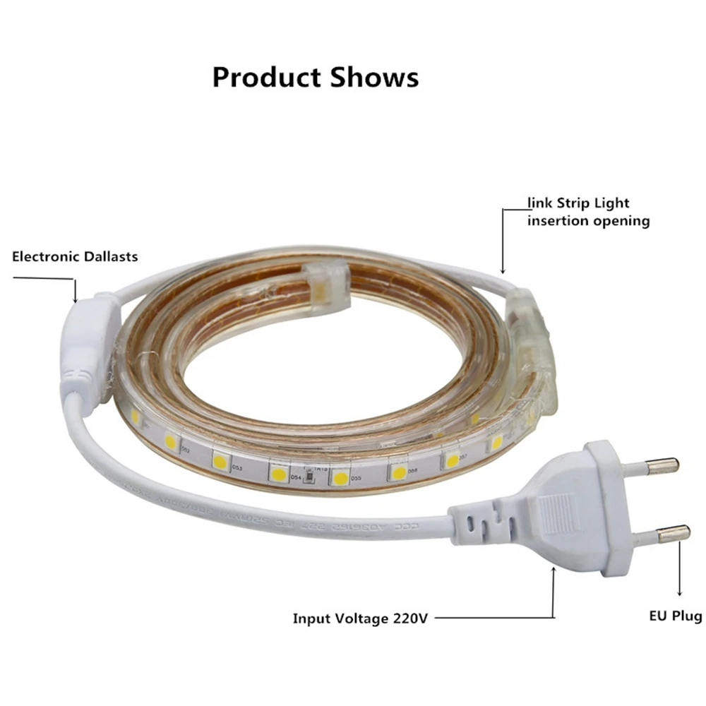 AC220V SMD 5050 Светодиодная лента гибсветильник 60 светодиодовм Водонепроницаемая светодиодная Светильник та со штекером питания 1 м2 м5 м8 м10 м15 м20 м50 М100 м