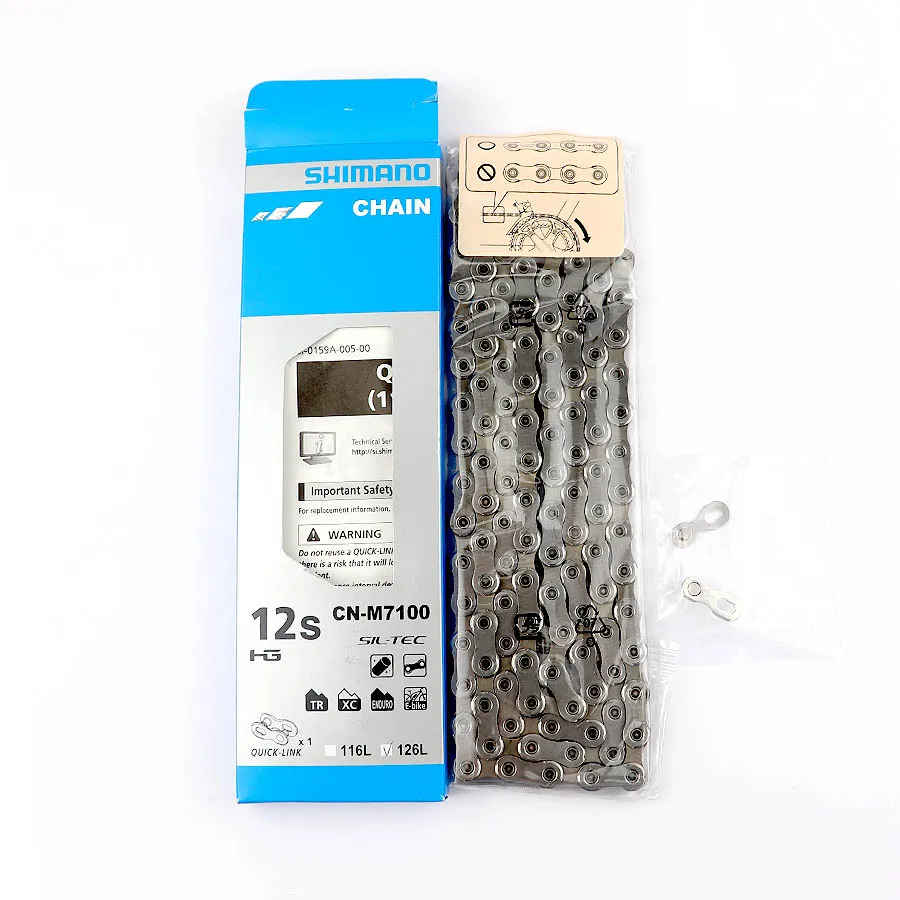 Цепь Shimano M7100 обеспечивает улучшенное удержание цепи благодаря расширенной части внутренней пластины. Новая цепь имеет быстродействующую сборку и SIL-TEC обработку для повышенной долговечности внедорожника.Функция закрытияУдлиненная внутренняя пластина улучшает сцепление и удержание цепиБыстроразъемные соединительные плоскогубцы (TL-CN10)Уменьшенное время переключения и Педалирование ударовОдноразового использованияИнструмент для быстрой сборки быстроразъемные соединительные и удаляющие плоскогубцы (TL-CN10)Выгодное закрытиеФирменная конструкция обеспечивает плавные сдвиги и прочностьСовместимость с 12-ступенчатая силовая передача